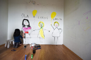 Prieš perduodami meistrams raktus, surengė… iškurtuves, kurias piešiniais ant sienų įamžino fantazijos nestokojantys vaikai ir ne mažiau išradingi suaugusieji.