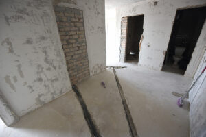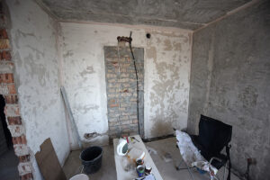 Trečia, užmūrytos durys į virtuvę, o lubos ir sienos – išlygintos. Tiesa, pastarasis darbas truko ilgiau, nei planuota, nes sienos buvo labai nelygios.