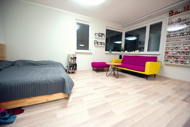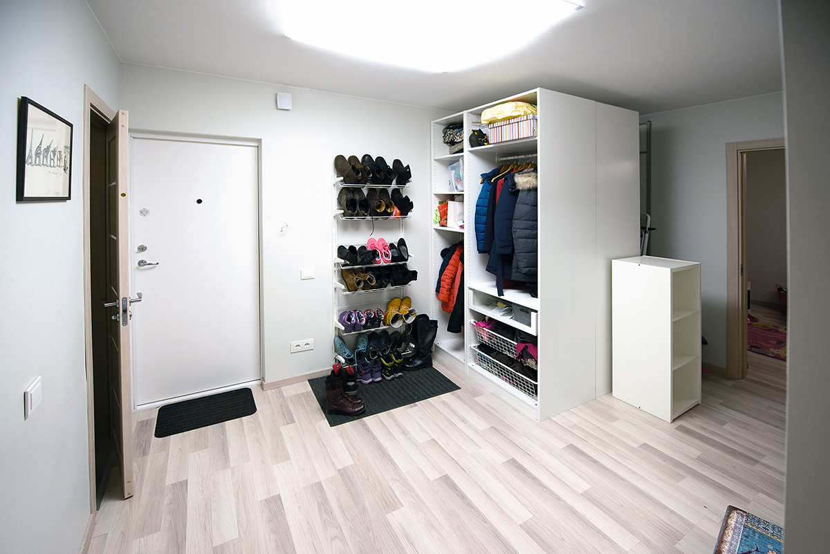 Per nepilnus tris mėnesius visiškai atnaujintas butas viename Vilniaus mikrorajonų nustebina taip, kad suabejoju tuo, ką matau. Sukirba mintis grįžti į laiptinę ir pasitikrinti, ar čia tikrai tas pats namas – paprastas standartinis daugiabutis, kokių daugybė? Nes butą, kuriame gyvena penkių asmenų šeimyna, kur kas lengviau įsivaizduoti moderniame naujos statybos daugiabutyje.