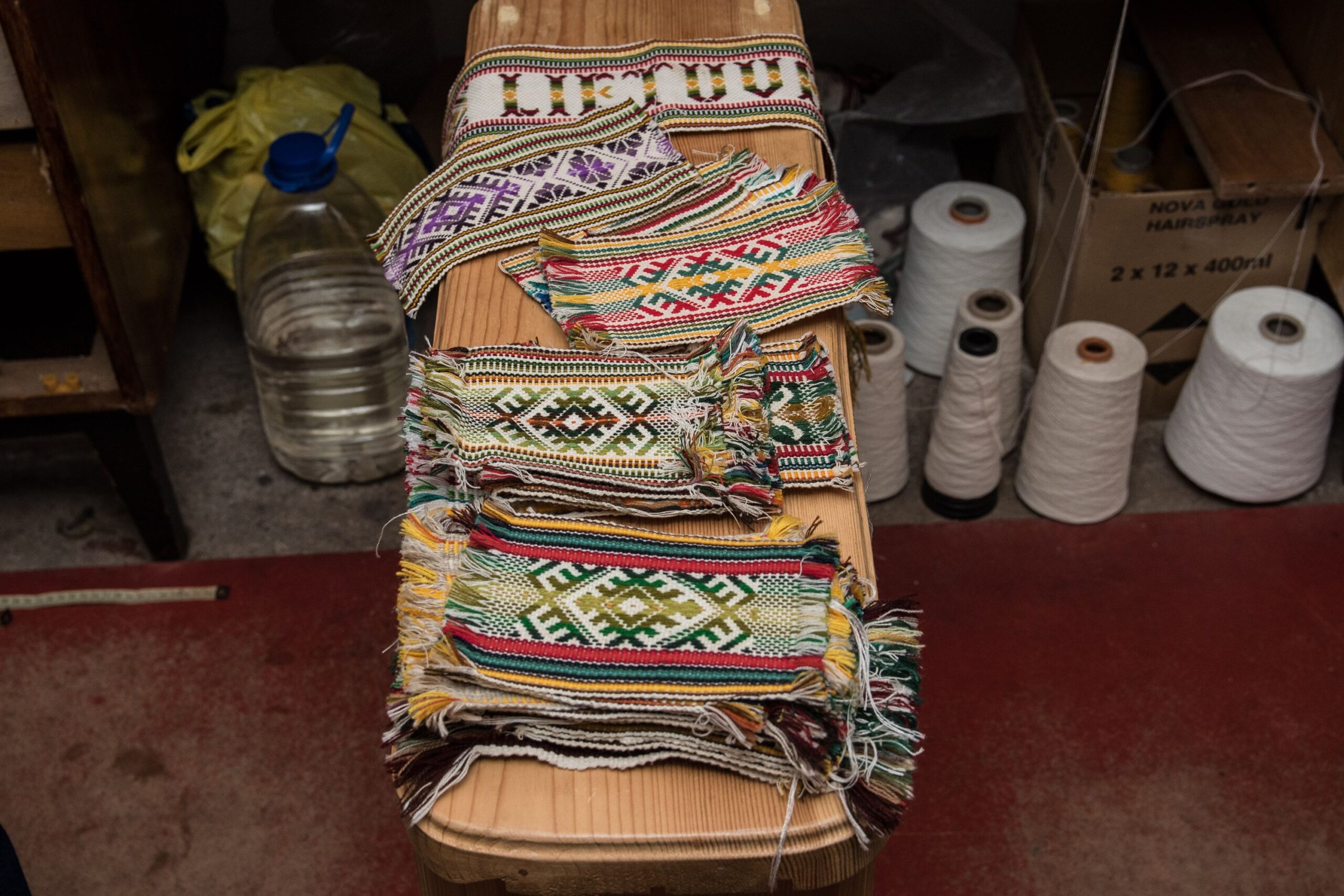 Po ilgų darbo valandų ant stalo gula visų trijų audėjų nuausti, tautinių raštų motyvais marginti gaminiai – juostos, juostelės, kaklaraiščiai, servetėlės. Užsakovų nestinga – tautinių juostų reikia folkloro ansamblių dalyviams, piršliams, jubiliatams, tautinio lietuvių paveldo puoselėtojams.