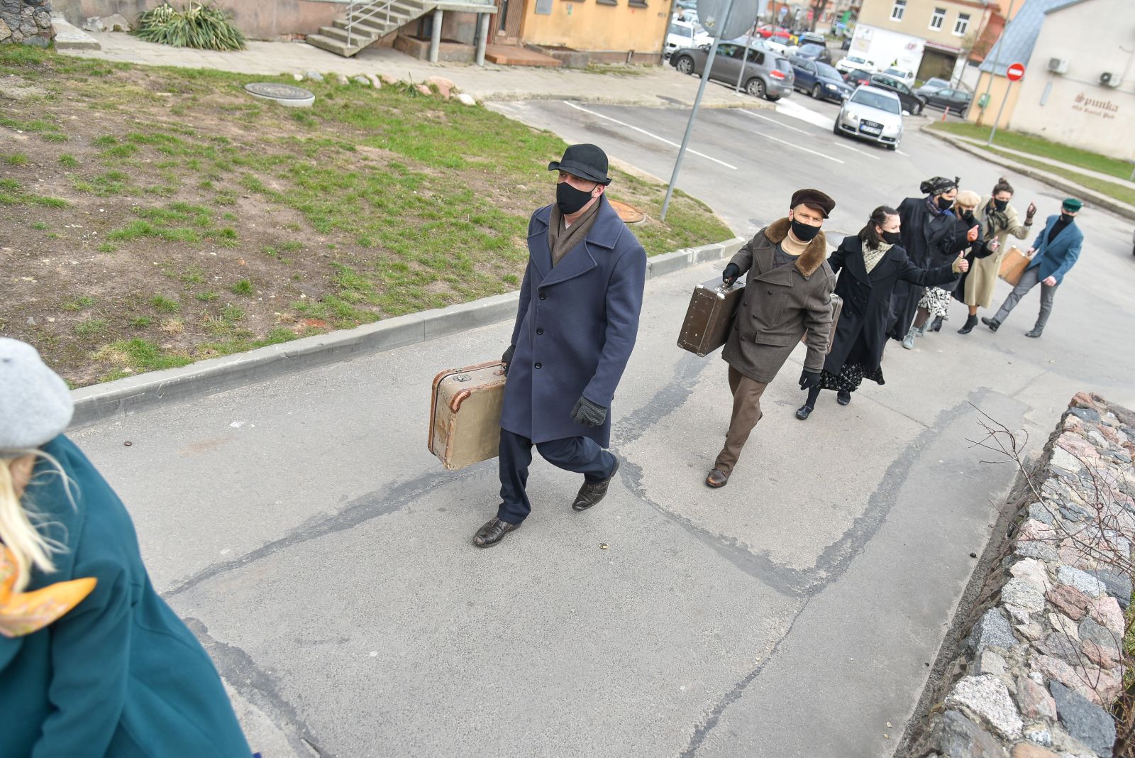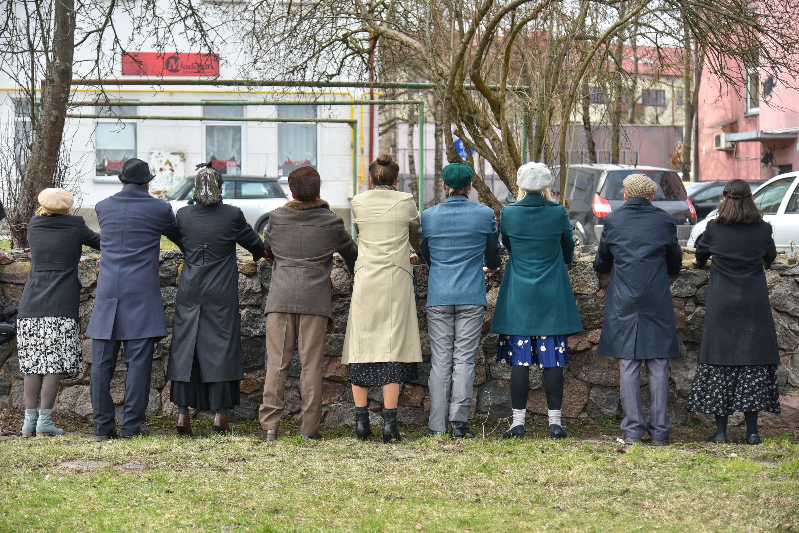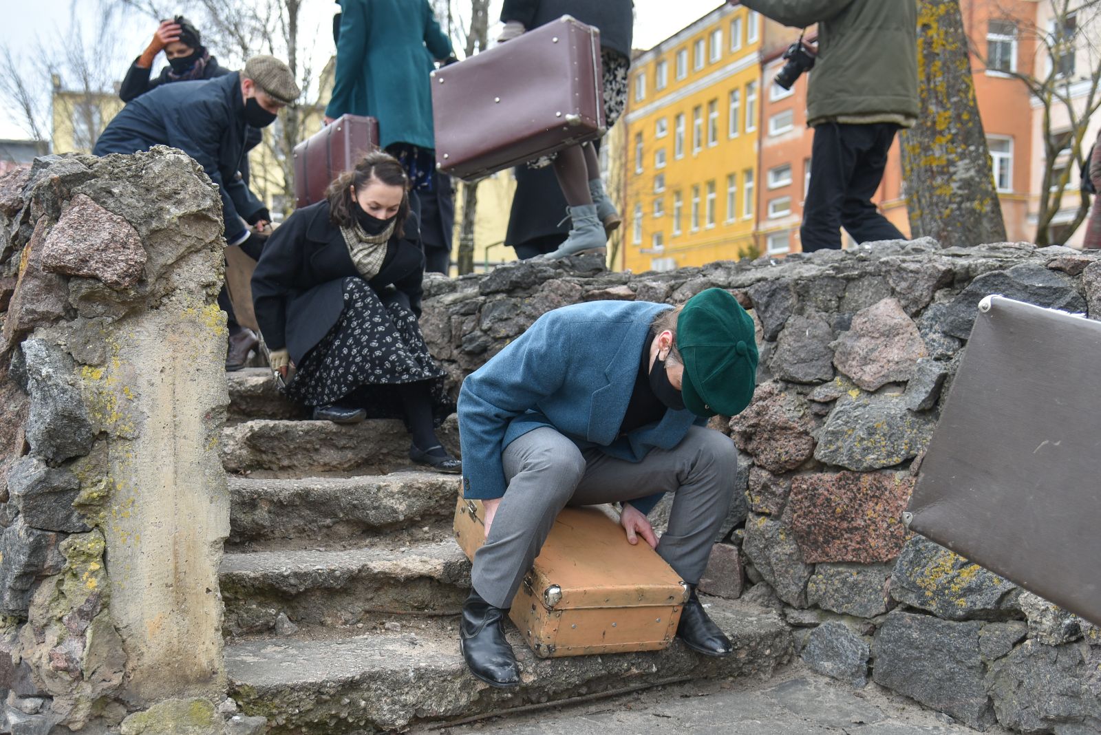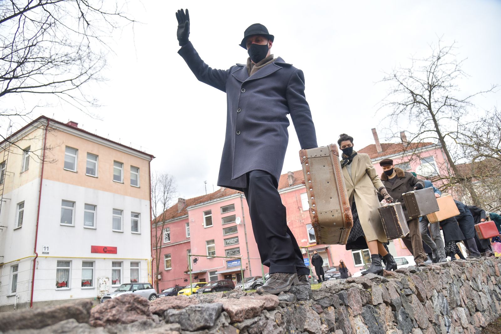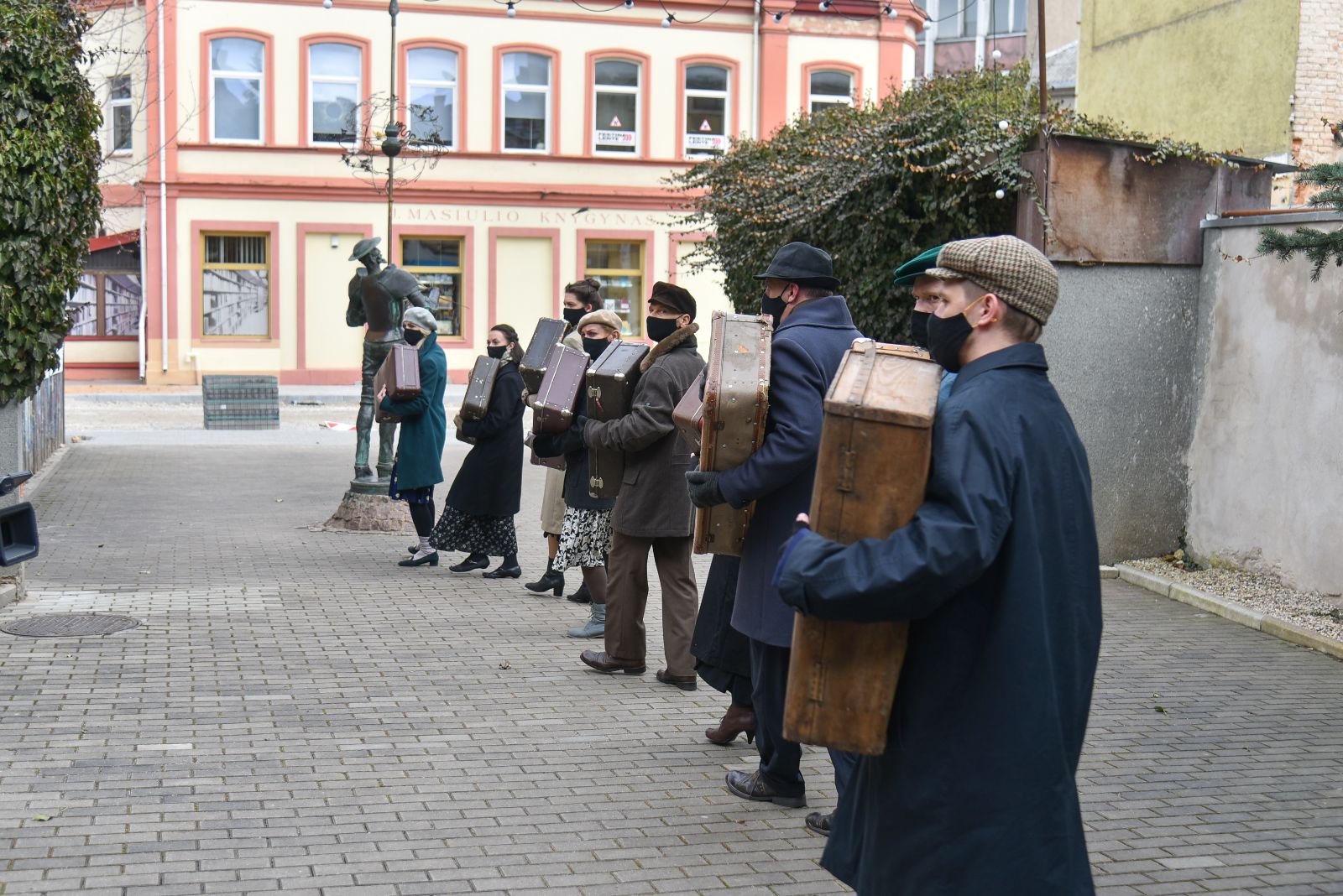 Praėjusio amžiaus šeštojo dešimtmečio apdarais vilkintys keistuoliai su lagaminais penktadienio popietę Panevėžio centre krėtė staigmenas. Pasikeitusiu Panevėžiu besistebintis, besidžiaugiantis, išdykaujantis paltuotų svečių būrys ne vienam sutiktajam kėlė šypseną. Tik nežinia, ką turėjo pagalvoti sunkvežimiu į remontuojamą Vasario 16-osios gatvę atriedėję kelininkai, kai staiga sustabdę jų mašiną tie keistuoliai tarsi niekur nieko sulipo į jos priekabą. Laisvės aikštėje gaudė balandžius, plyteles klojančių darbininkų prašė tylos.