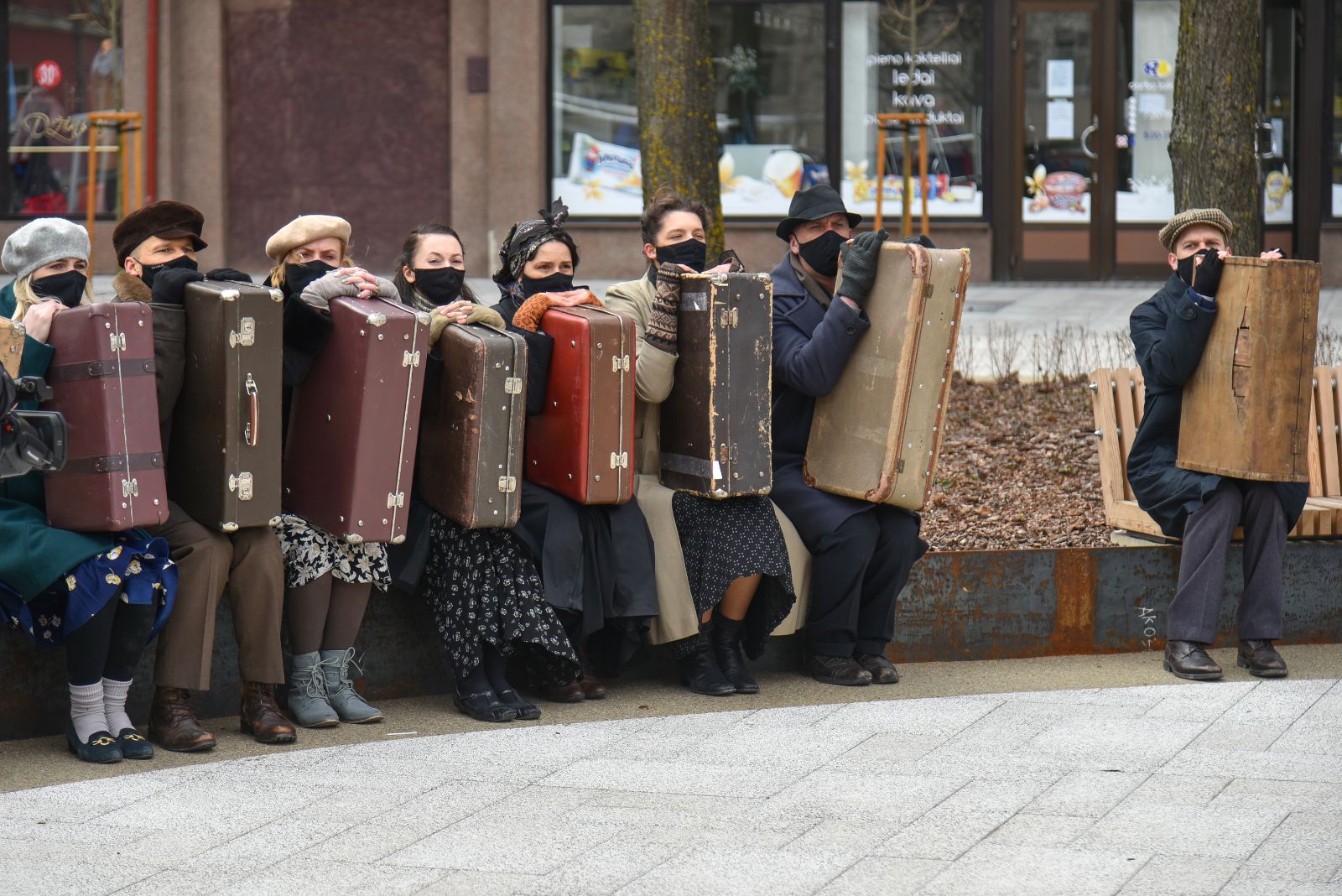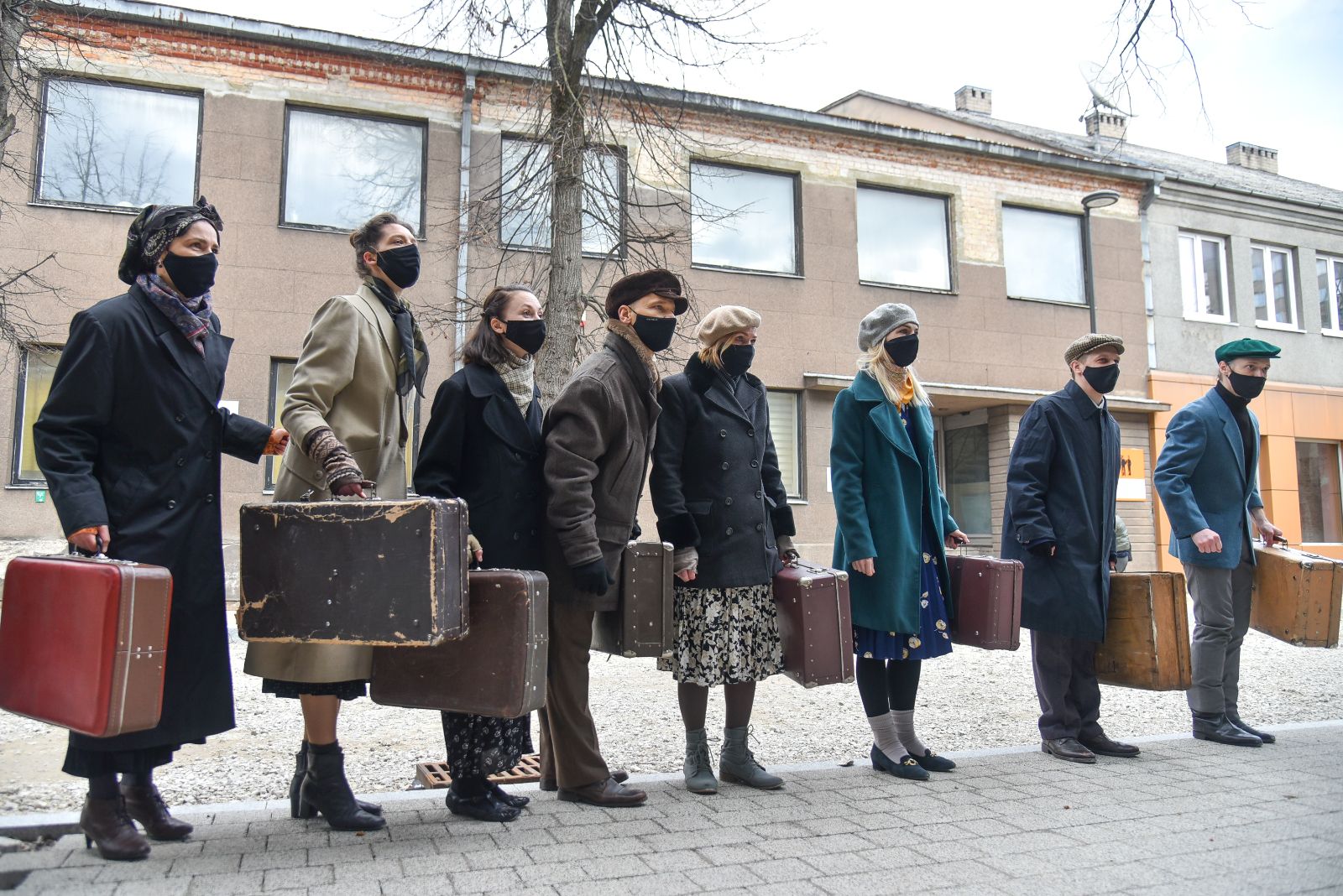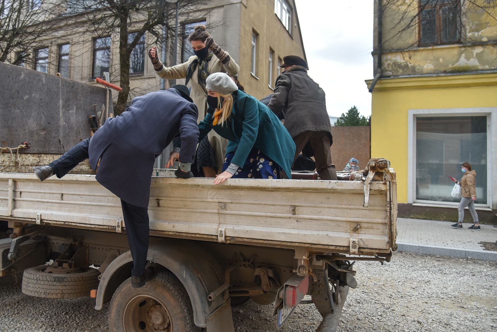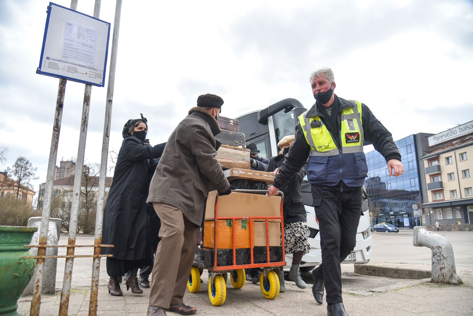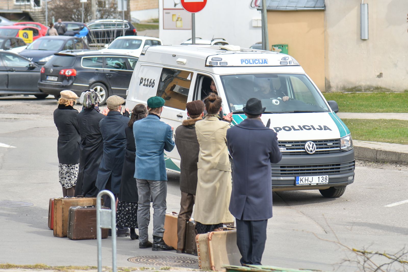 Praėjusio amžiaus šeštojo dešimtmečio apdarais vilkintys keistuoliai su lagaminais penktadienio popietę Panevėžio centre krėtė staigmenas. Pasikeitusiu Panevėžiu besistebintis, besidžiaugiantis, išdykaujantis paltuotų svečių būrys ne vienam sutiktajam kėlė šypseną. Tik nežinia, ką turėjo pagalvoti sunkvežimiu į remontuojamą Vasario 16-osios gatvę atriedėję kelininkai, kai staiga sustabdę jų mašiną tie keistuoliai tarsi niekur nieko sulipo į jos priekabą. Laisvės aikštėje gaudė balandžius, plyteles klojančių darbininkų prašė tylos.