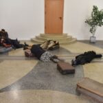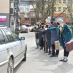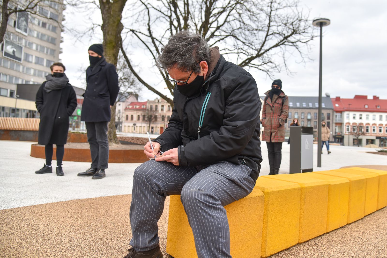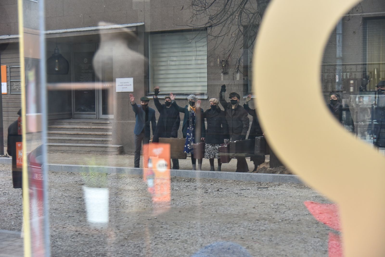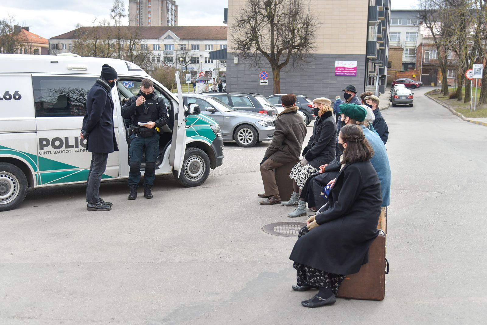 „Tai tarsi mūsų repeticija po mokymų. Iš anksto nežinojome, ką turėsime daryti gatvėje, ką teks vaidinti“, – pasakoja aktorė Elona Karoblytė.