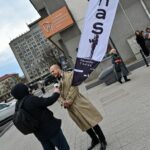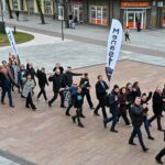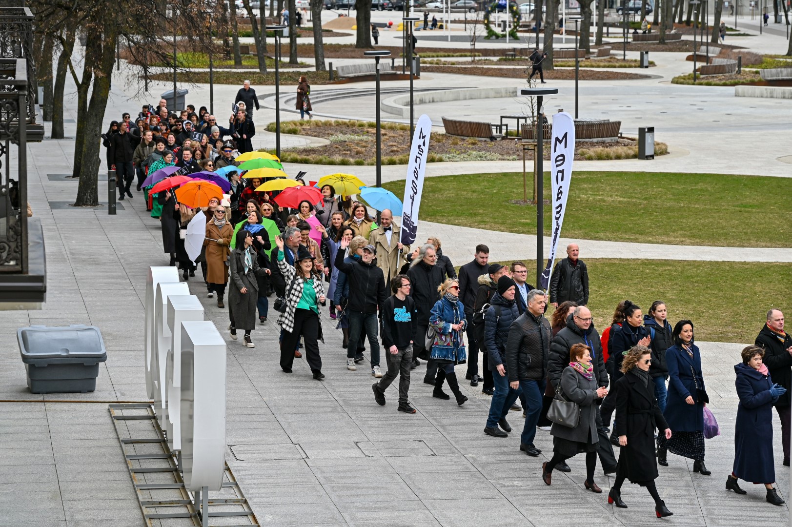Pirmą kartą organizuota Panevėžio teatralų eisena nusidriekė nuo kunigaikščio Aleksandro paminklo Laisvės aikštėje iki Muzikinio teatro.