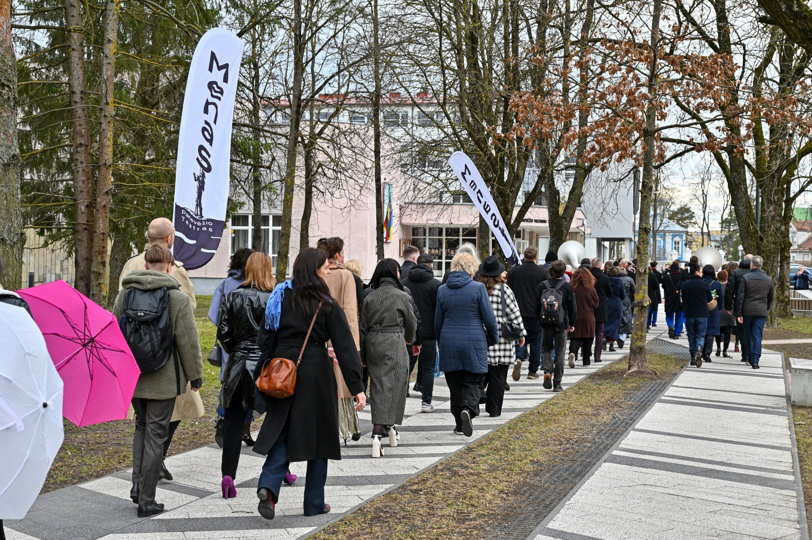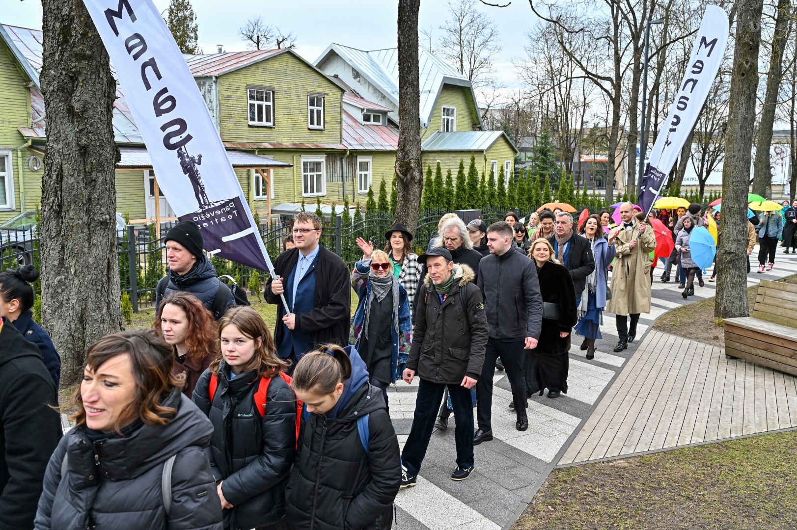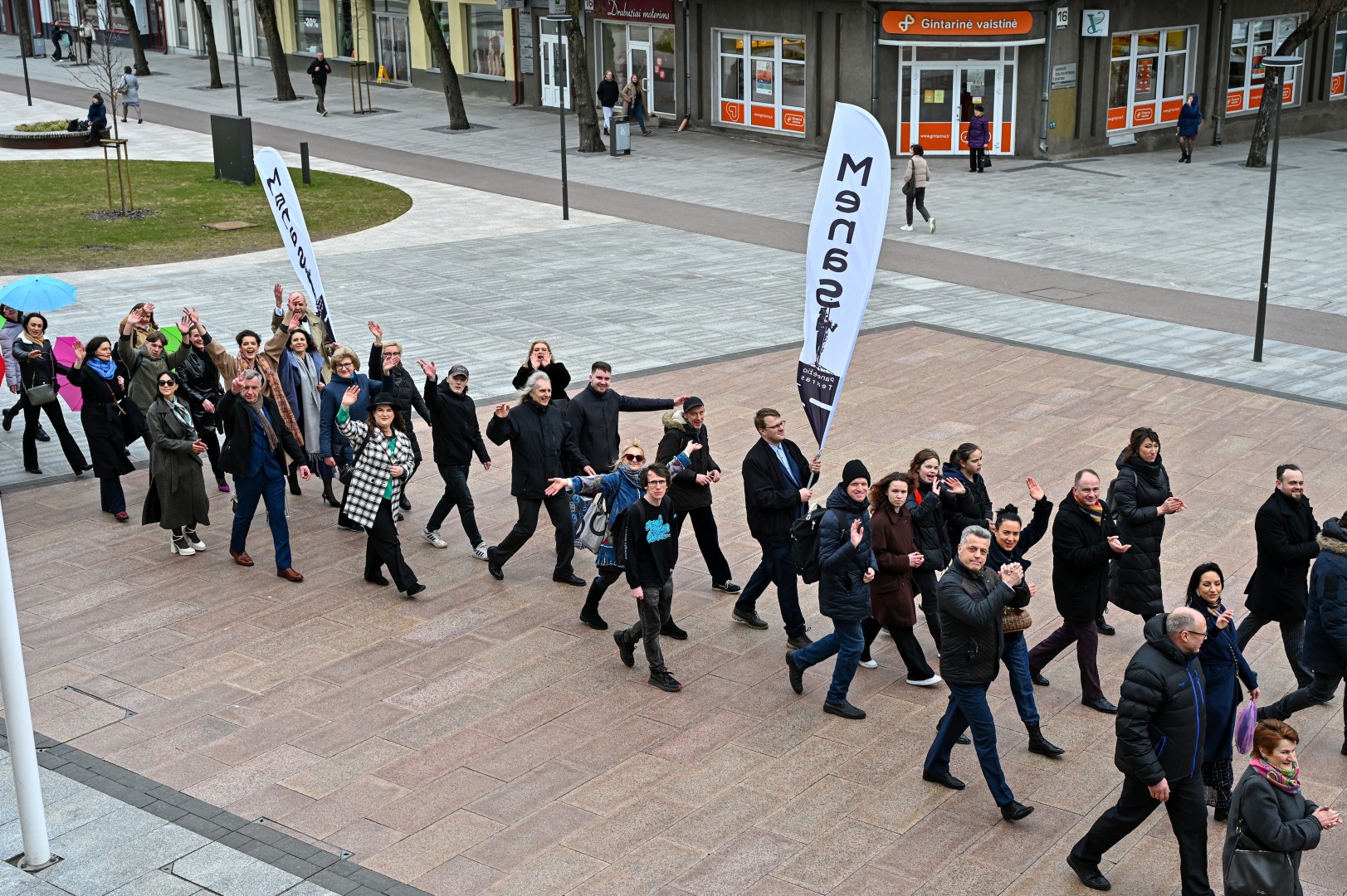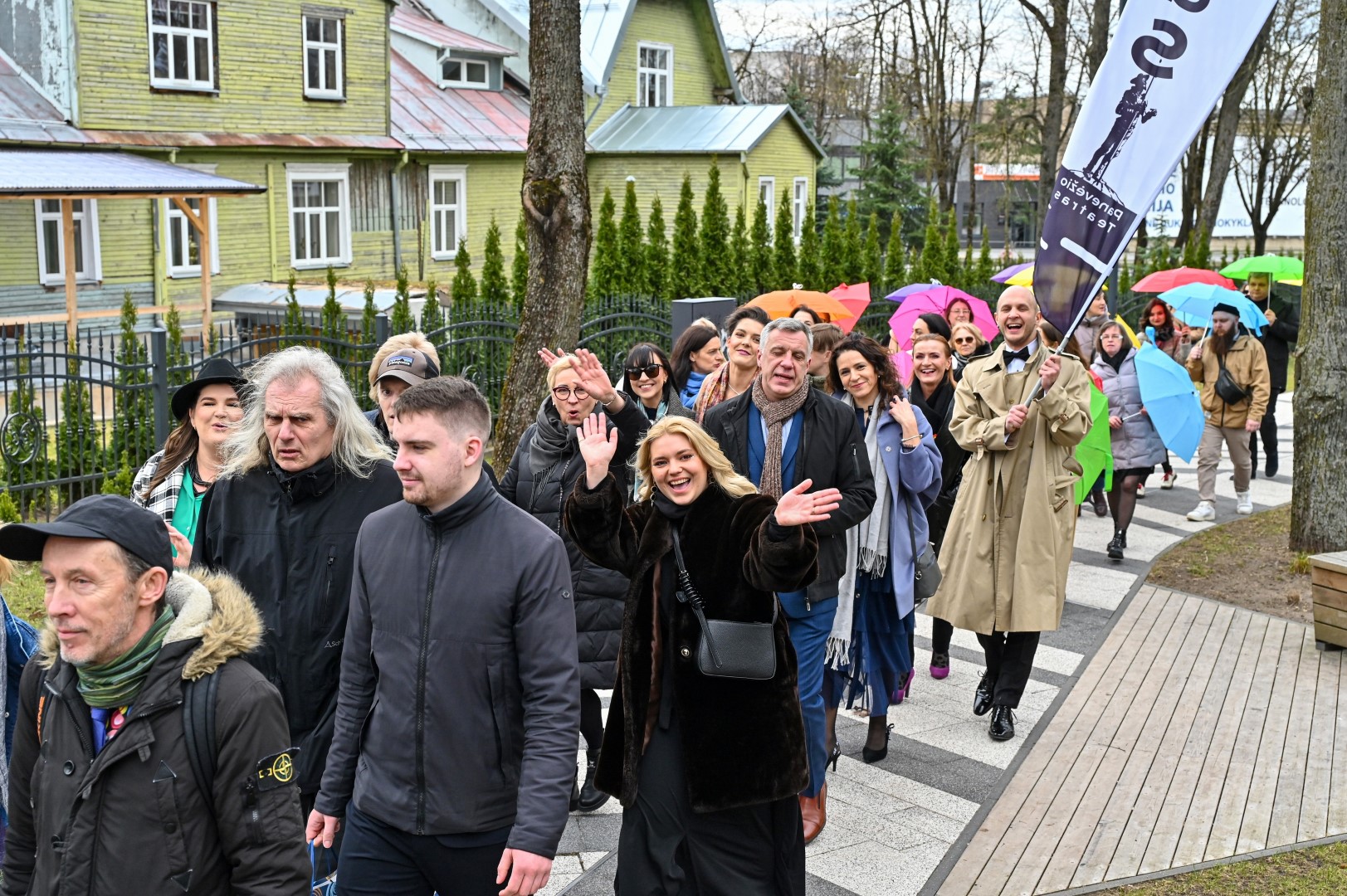 Pirmą kartą organizuota Panevėžio teatralų eisena nusidriekė nuo kunigaikščio Aleksandro paminklo Laisvės aikštėje iki Muzikinio teatro.