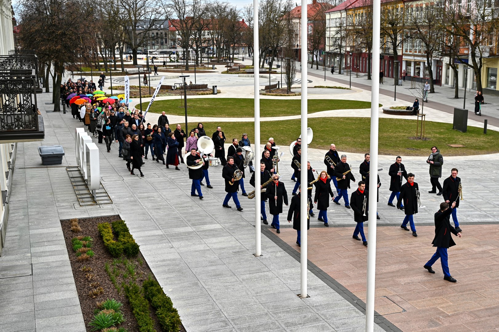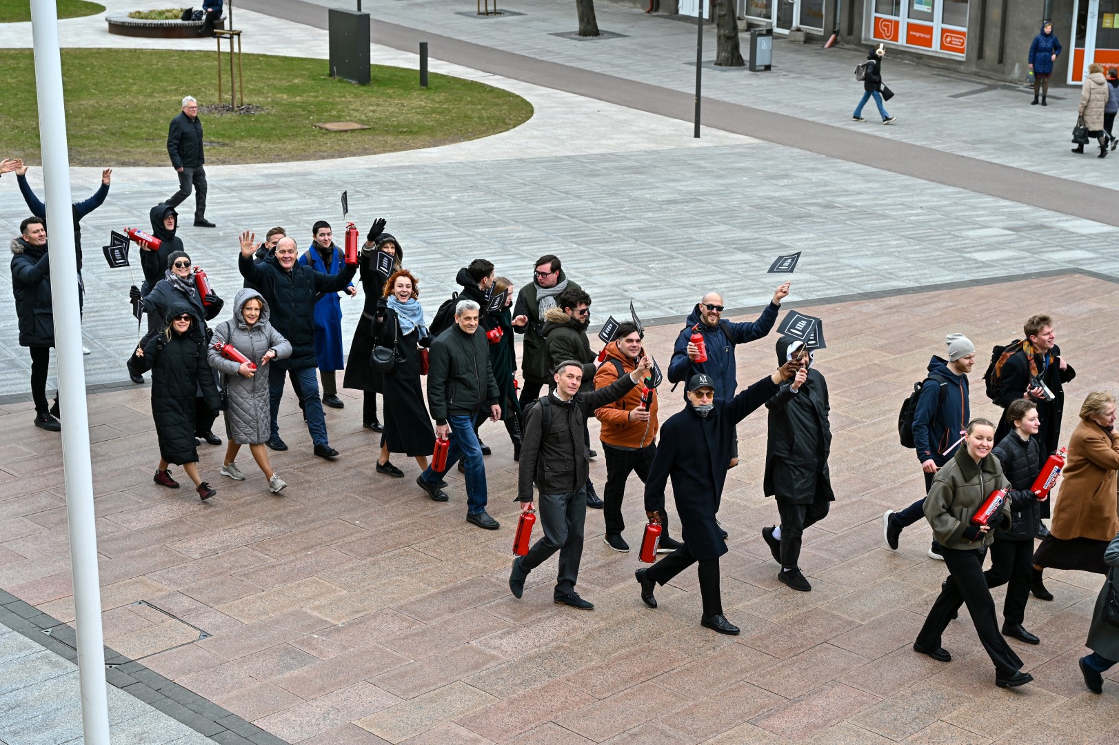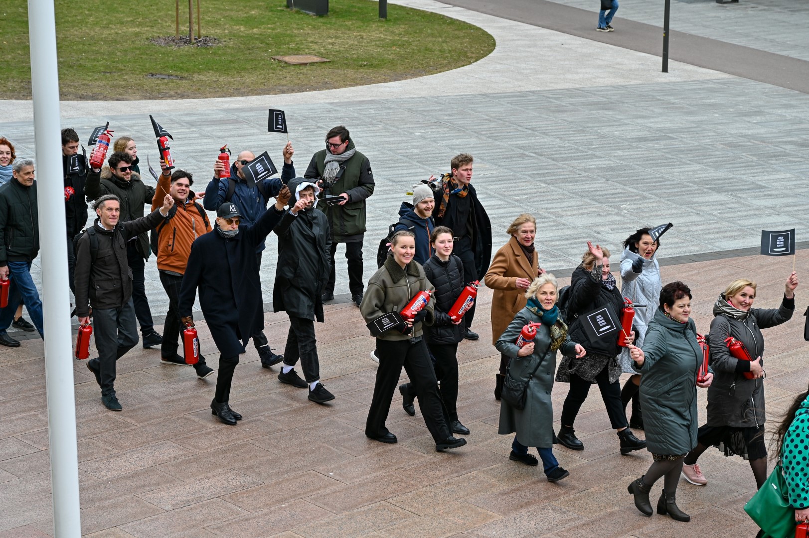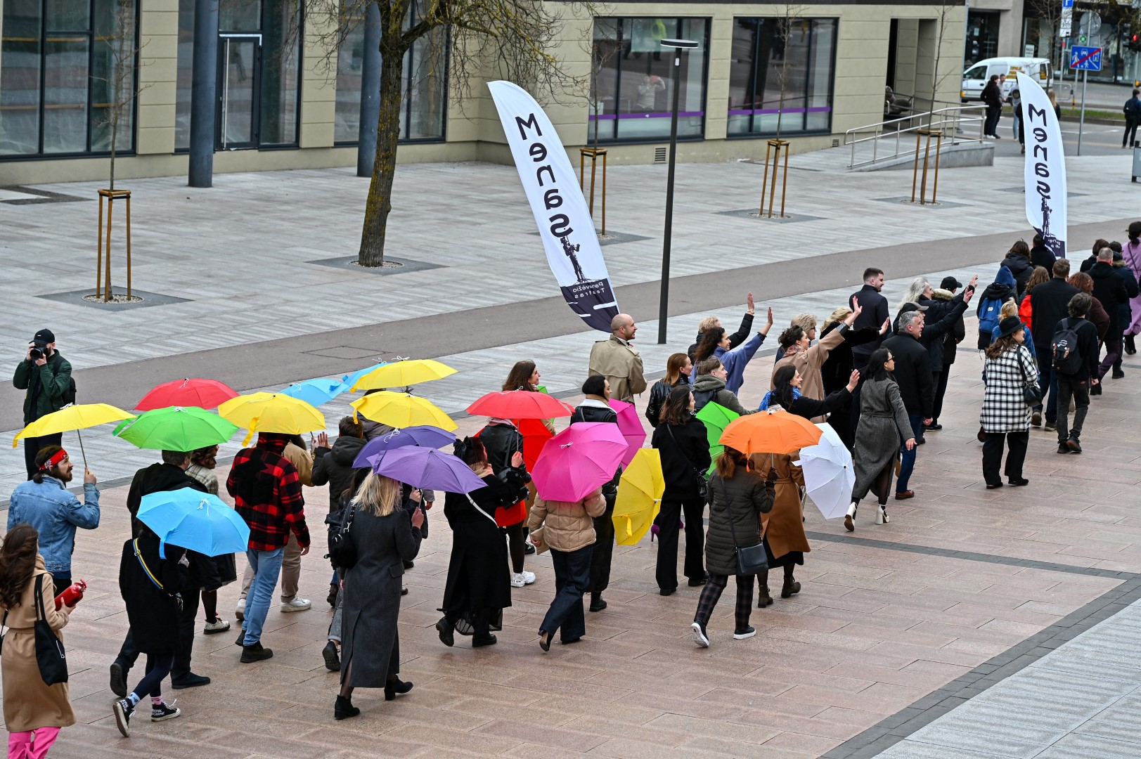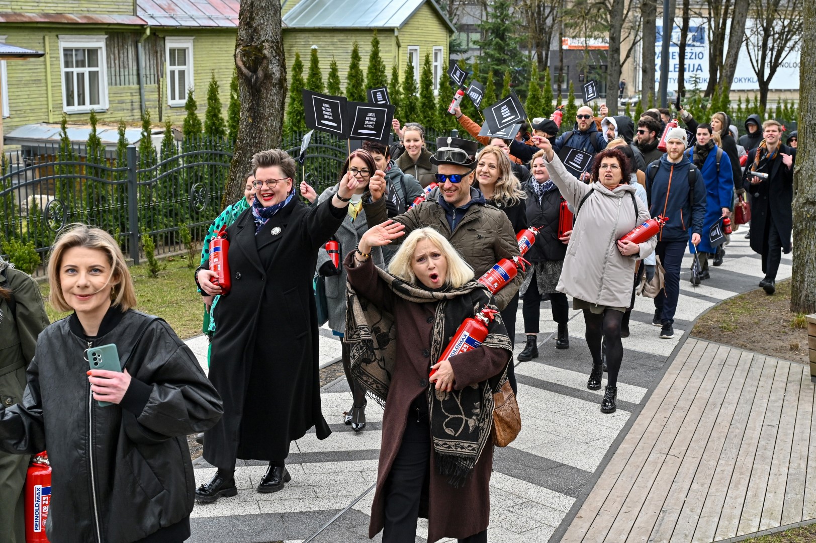 Pirmą kartą organizuota Panevėžio teatralų eisena nusidriekė nuo kunigaikščio Aleksandro paminklo Laisvės aikštėje iki Muzikinio teatro.