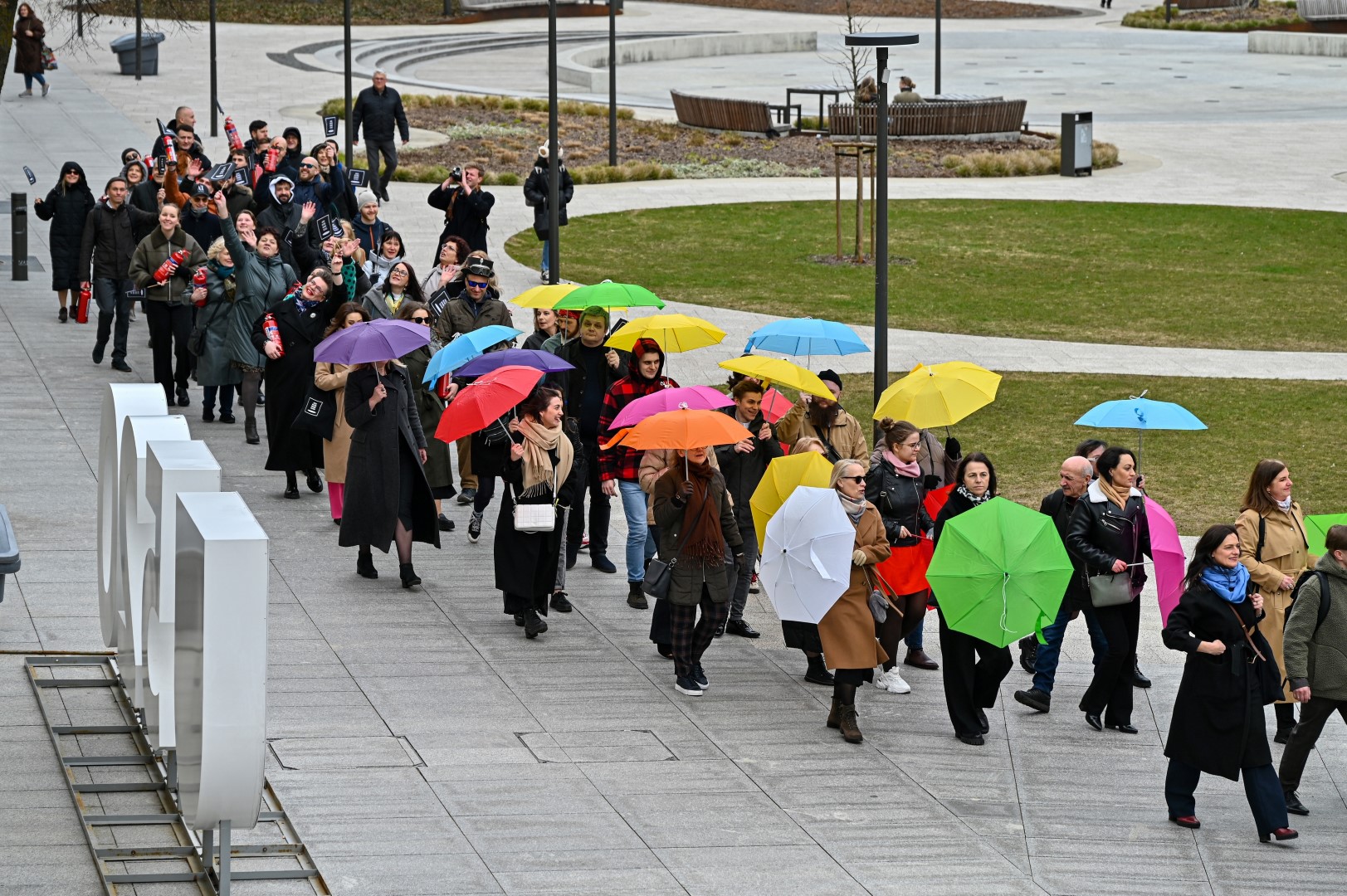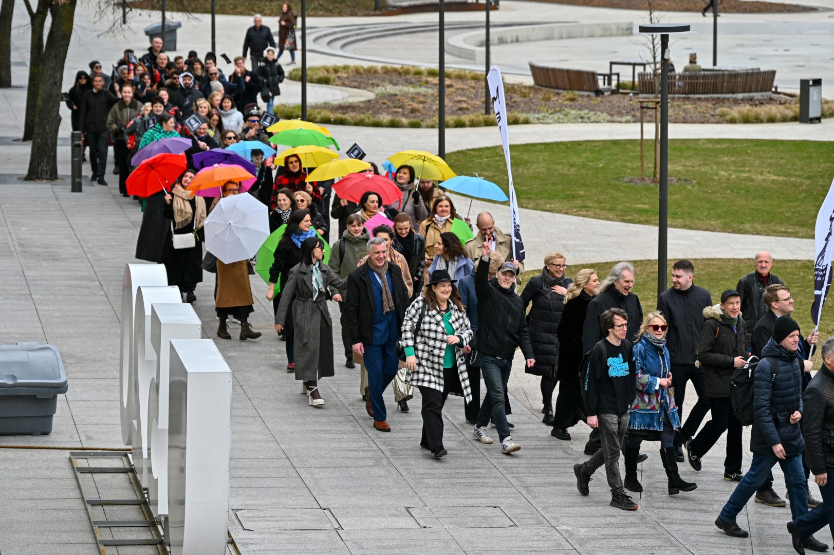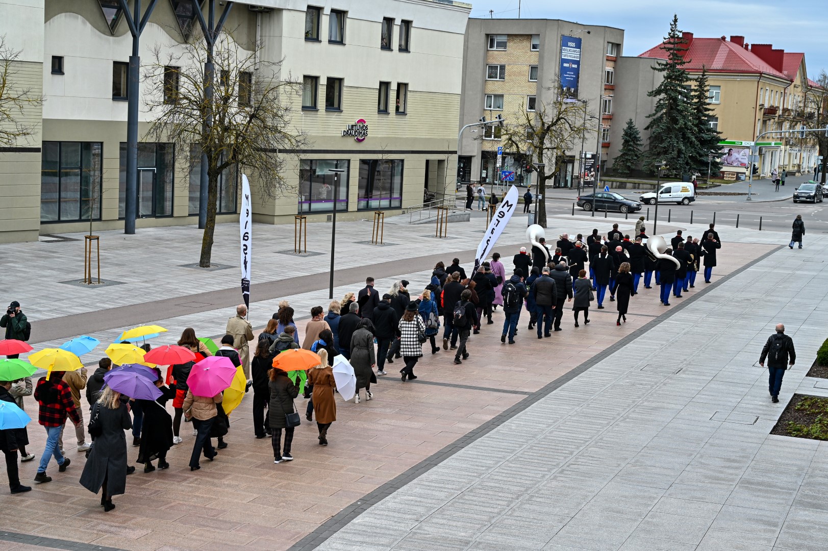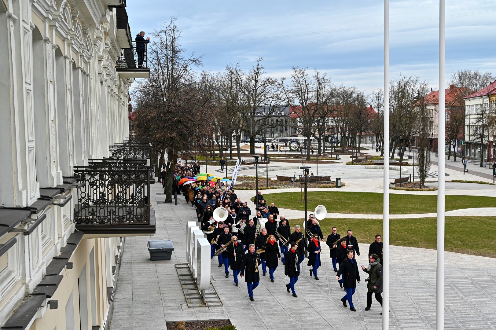 Pirmą kartą organizuota Panevėžio teatralų eisena nusidriekė nuo kunigaikščio Aleksandro paminklo Laisvės aikštėje iki Muzikinio teatro.