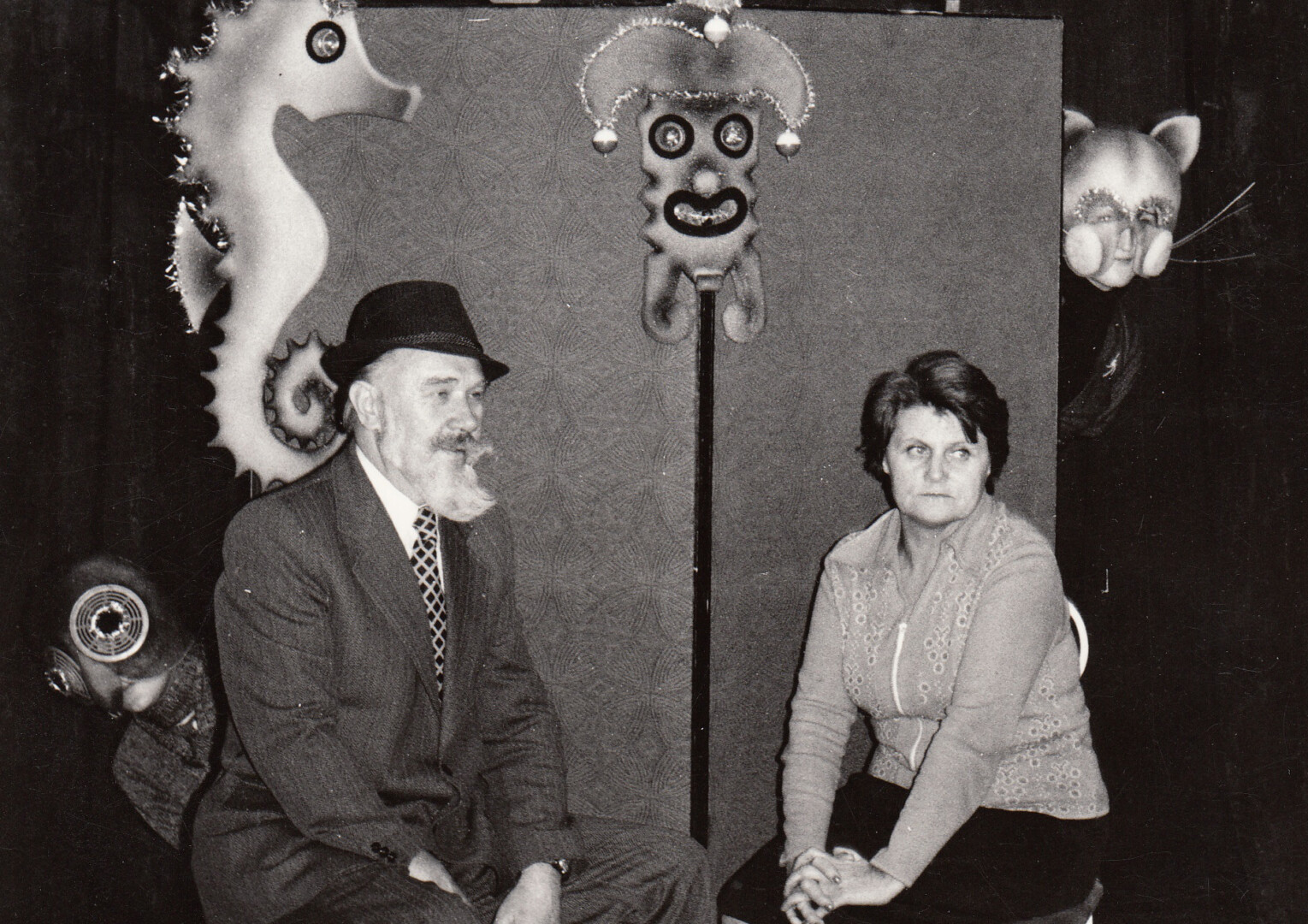 Į Panevėžį atvedę lėlių magiją Albertas Stepanka su žmona, teatro režisiere Jule Blėdyte-Stepankiene. Apie 1978 m.