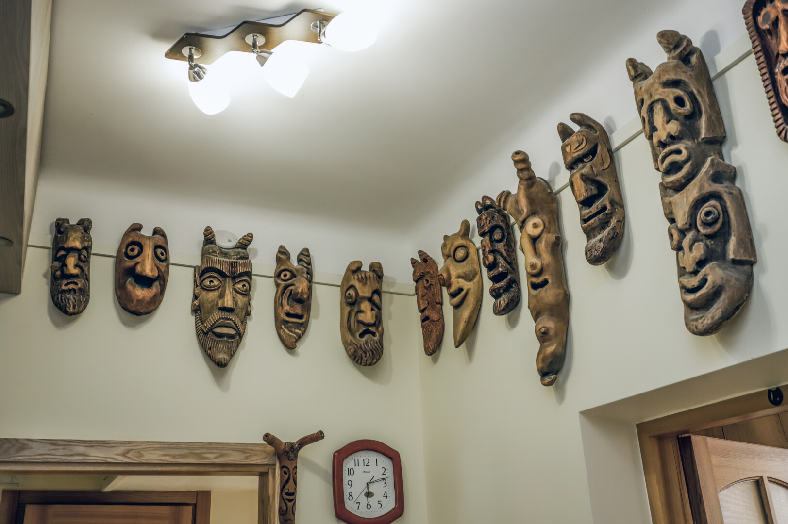 D. Žukauskienės namų erdves puošia daugybė medinių kaukių – visos drožinėtos garsiojo tėčio. Diana stebėdavosi, kaip iš kreivos miške rastos pliauskos gimdavo vis naujas personažas. Kuo šaka būdavusi kreivesnė, tuo labiau patraukdavusi tėčio dėmesį, tad daugelis A. Stepankos kurtų kaukių pasižymi asimetrija.