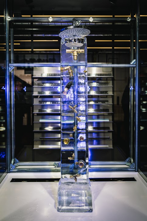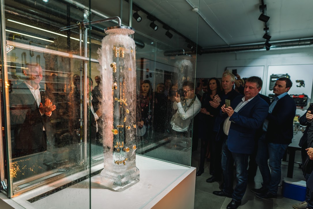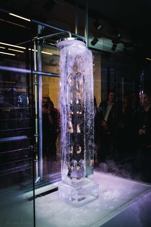 Atidarymo iškilmės prasidėjo meniniu performansu – svečių ir šeimininkų akyse ledo stulpas su jame įšaldytomis detalėmis pamažu tirpo po šilta dušo srove. Vanduo nepastebimai subėgo į dušo lataką. Šiam reginiui buvo pritaikyti moderniausi bendrovės inžineriniai sprendimai.