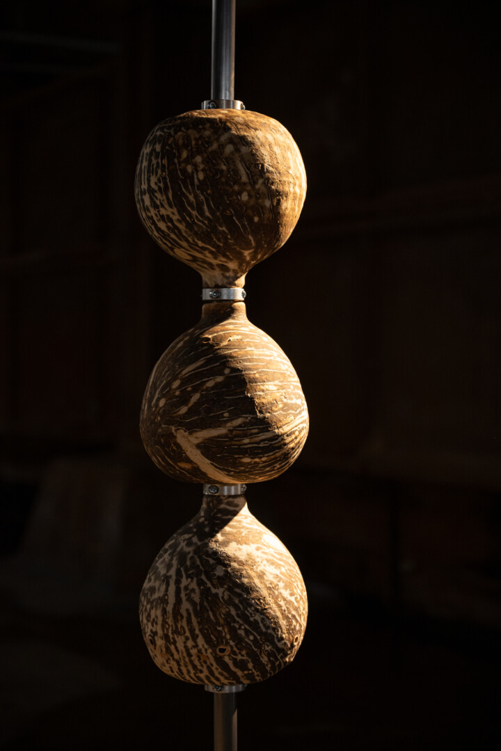 J. C. Decaux buvo labai metaforiška skulptūra, naudojant skirtingas medžiagas ir mąstant, kaip jos geologiškai veikia per ilgus laikotarpius. O šioje parodoje viskas labai vietiška: dirbau su vietiniu vandeniu, mikroorganizmais aplink rezervuarą. Surinkau mieles nuo augalų paviršių, ore ir aplinkui gyvenančius mikroorganizmus, su jais kūriau skysčių receptus, kuriais užpildžiau indus.