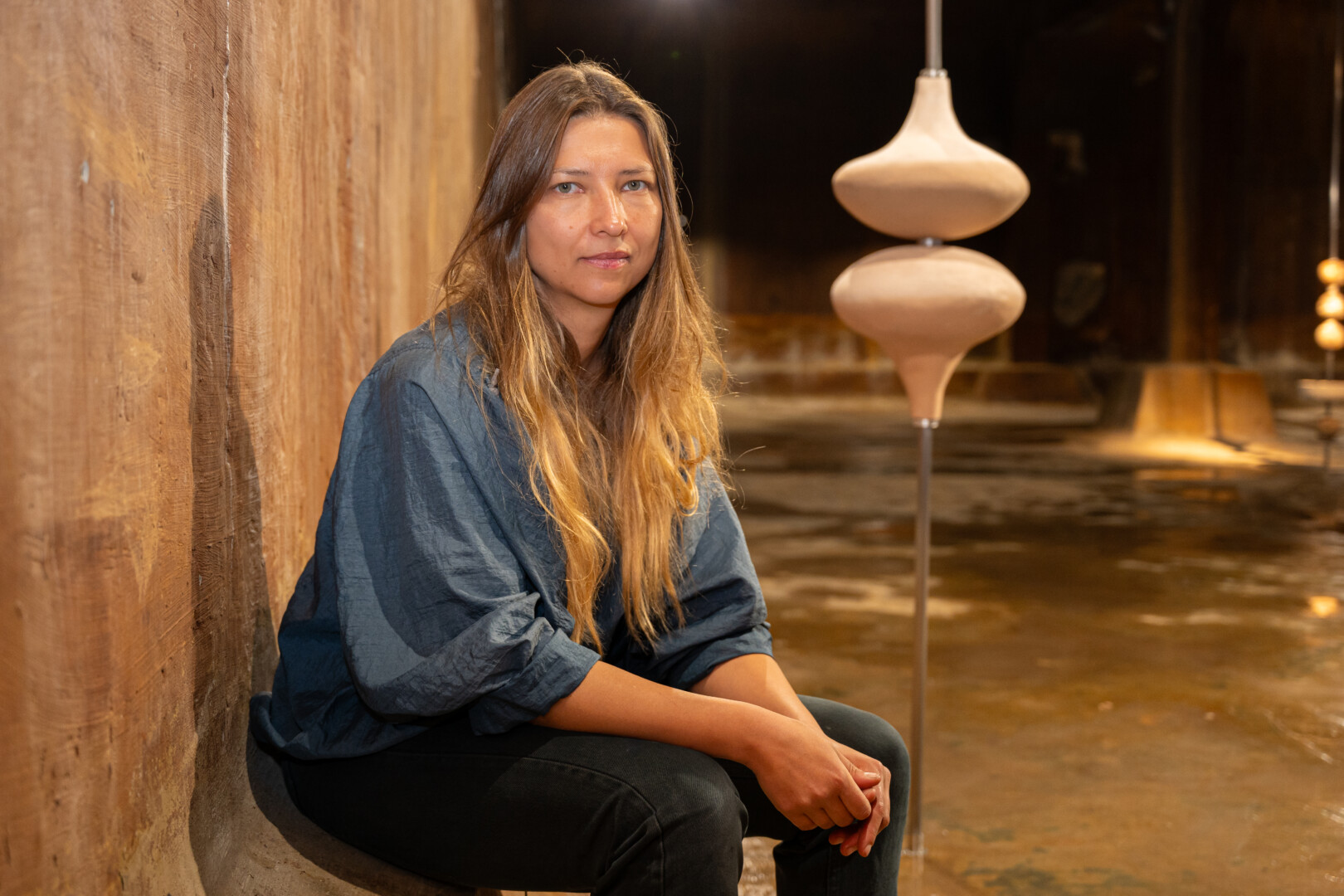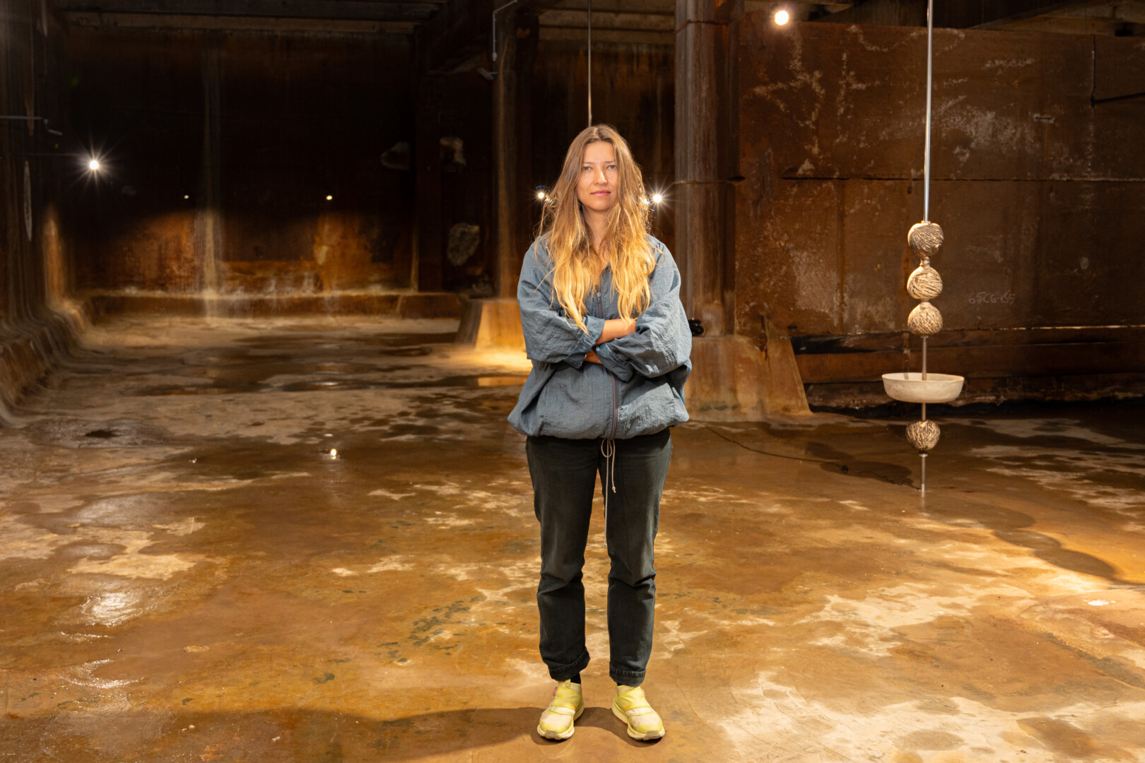 Londone gyvenanti ir kurianti Urtė Janus nebenaudojamame rezervuare pristato instaliaciją „Tekantys kūnai“.