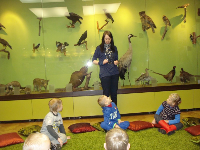 Panevėžio kraštotyros muziejuje mūsų šešiamečiai dalyvavo edukacinėje programoje ,,Pasek miško pasaką“. Muziejaus darbuotoja Vaida labai sumaniai tikrovę susiejo su pasaka. Kad išvaduotų pagrobtą karalaitę, ugdytiniams teko įveikti daug užduočių: jie mokėsi pavadinti medžius, atpažinti ir surūšiuoti jų sėklas, skirti paukštelių balsus, eksponatų eilėje surasti nurodytą gyvūną. Programos kulminacija – į duris pasibeldusi išvaduotoji karalaitė visiems išdalijo dovanas ir pateikė apibendrinančius klausimus. Per edukacinę programą ugdytiniai ne tik pakartotojo įgytas žinias, bet ir stengėsi kalbėti taisyklingais sakiniais.
