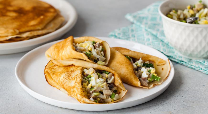 Prieš aptepdami blynus, įdarą palaikykite šaldytuve 8–12 val.