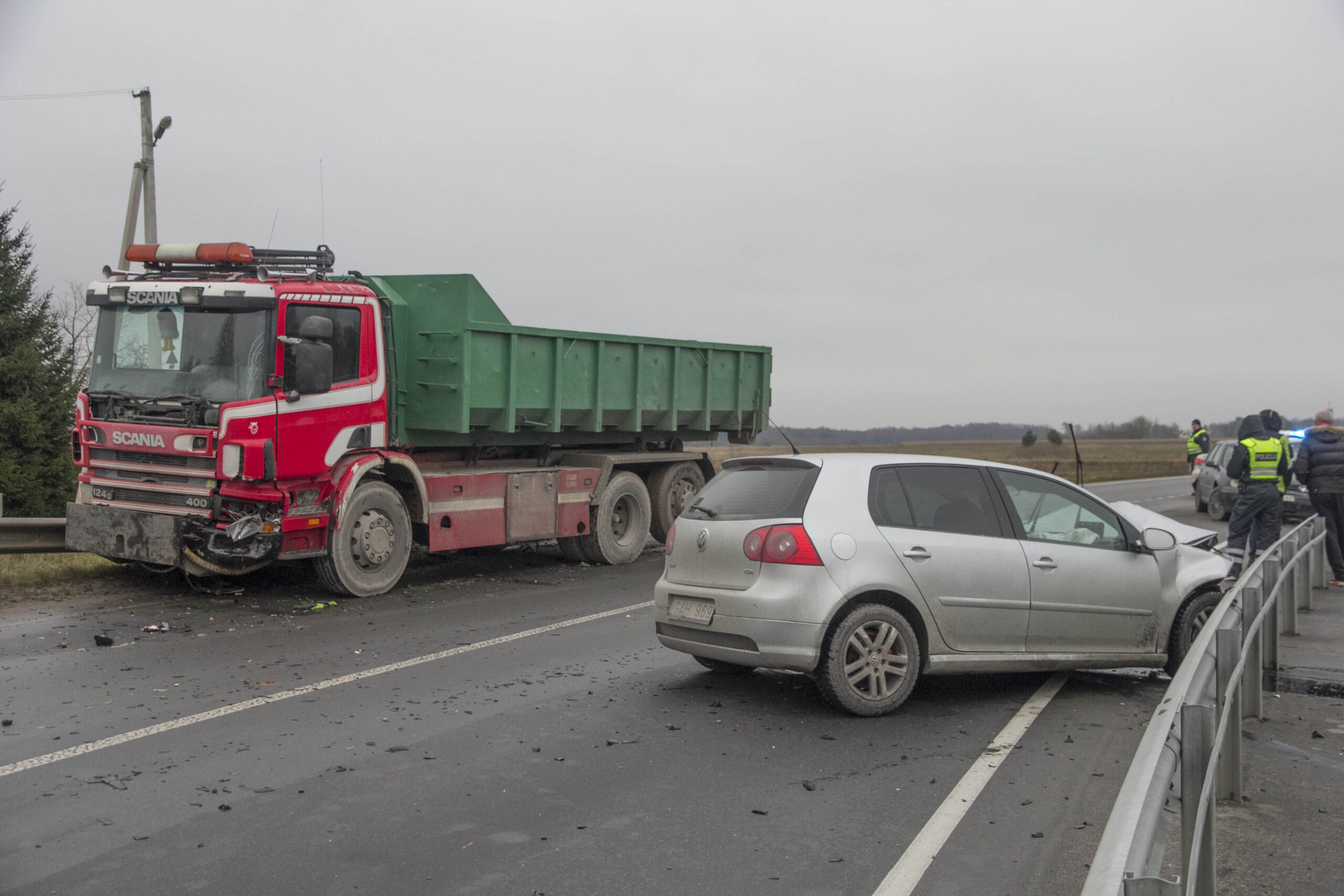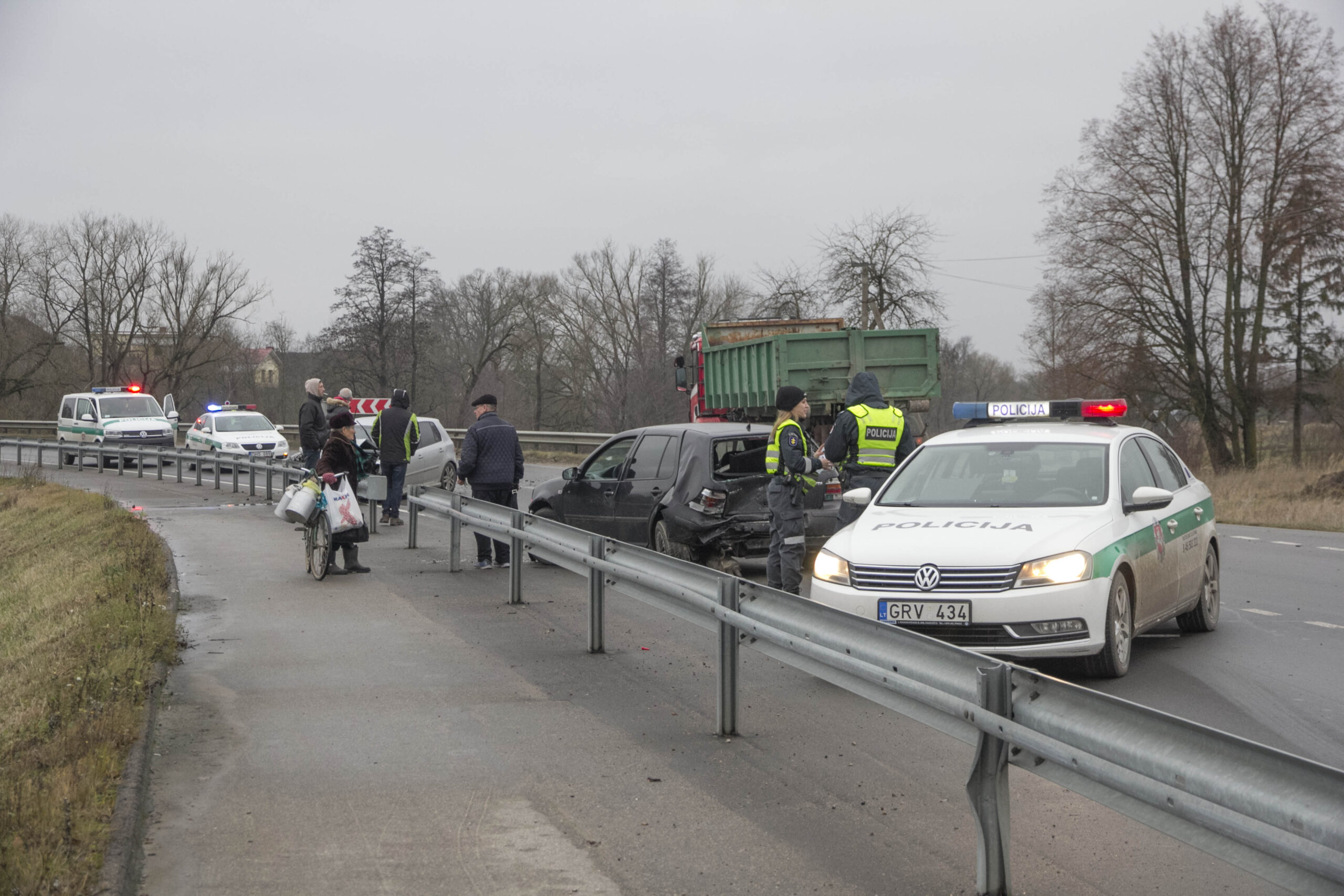 Pirminiais duomenimis, susidūrė du lengvieji automobiliai ir sunkvežimis. Vienam automobiliui suknežintas visas priekis, kitam kliuvo į galą, mažiau apgadintas sunkvežimis.