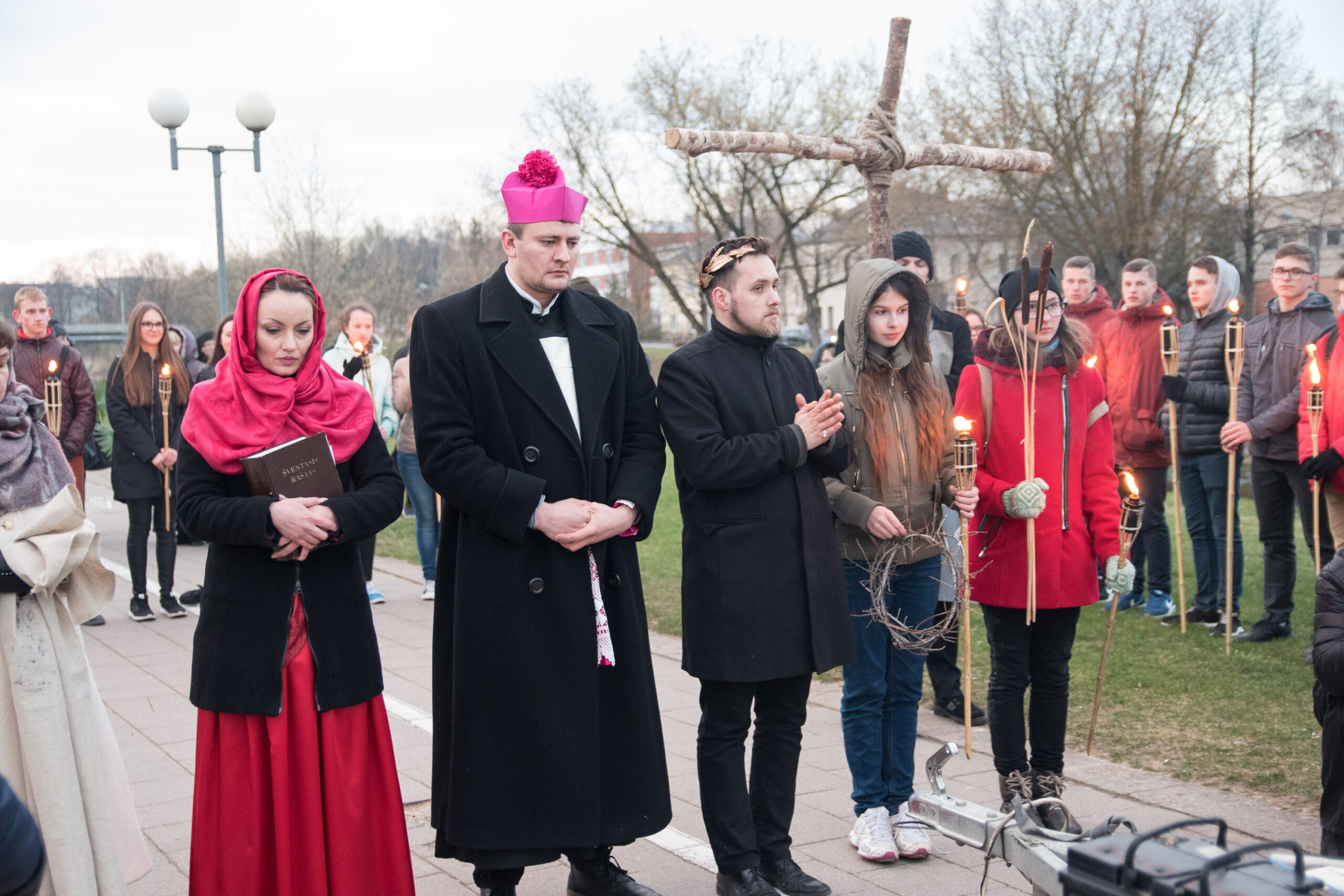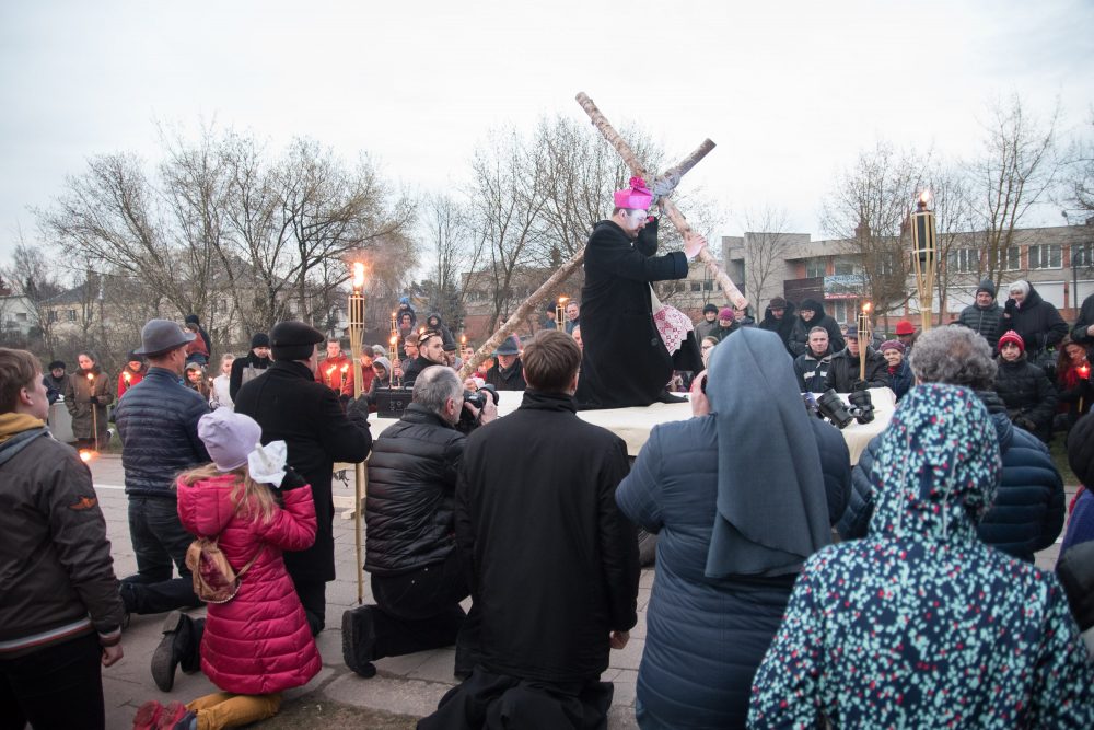 Kryžiaus kelio istoriją vaizdavo miesto aktoriai. Tam buvo specialiai įrengta traukiama scena. Priminta ne tik Kristaus kančia, bet ir papasakota garbingojo arkivyskupo, kankinio Teofiliaus Matulionio, kuris birželį bus paskelbtas palaimintuoju, kančios istorija.