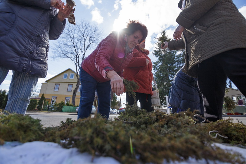 „O dabar abu vieni einame į Šv. Mišias, kurių metu prisiminsime Kristaus kančios metą“, – patikino ponia, Janina skubiai prie Katedros vartų nusipirkusi kuklią kadagio puokštelę už 50 centų.