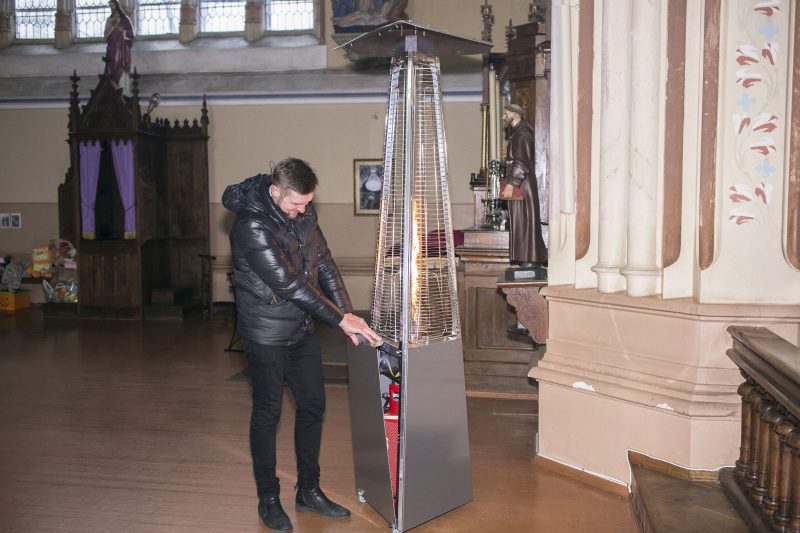Ramygalos parapijos naujajam ganytojui kun. A. Puško visų išsiilgtos šventės didysis darbymetis. Klebonui rūpi, kad susirinkusiesiems į Piemenėlių mišias bažnyčioje būtų jauku ir šilta. V. Bulaičio nuotr.