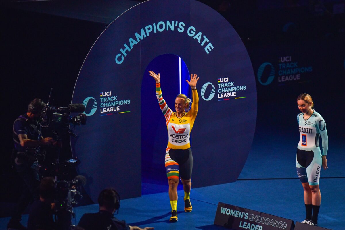 Labiausiai tituluota Lietuvos dviratininkė S. Krupeckaitė atsisveikino su profesionalios sportininkės karjera plojant ir skanduojant „ačiū“ tūkstantinei Panevėžio arenai. P. Židonio nuotr.