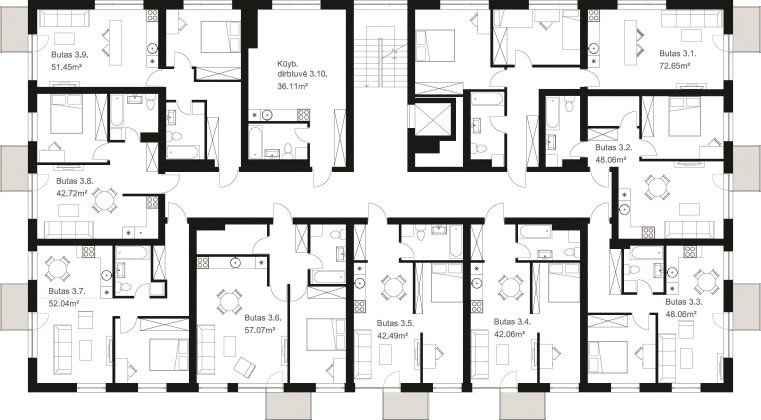 Daugiabučiame gyvenamajame name suprojektuoti 47 vieno, dviejų, trijų ir keturių kambarių butai su balkonais. Norint pasiekti išskirtinį ekonomiškumo standartą, namo statybai naudojamos kokybiškos ir šiltos medžiagos, pažangūs projektavimo sprendimai. Sienos – silikatinių plytų mūro, apšiltintos putų polistirenu. Bus sumontuoti šilumą taupantys 3 stiklų langai. Šildymas – centrinis kolektorinis, prijungtas prie miesto tinklų.