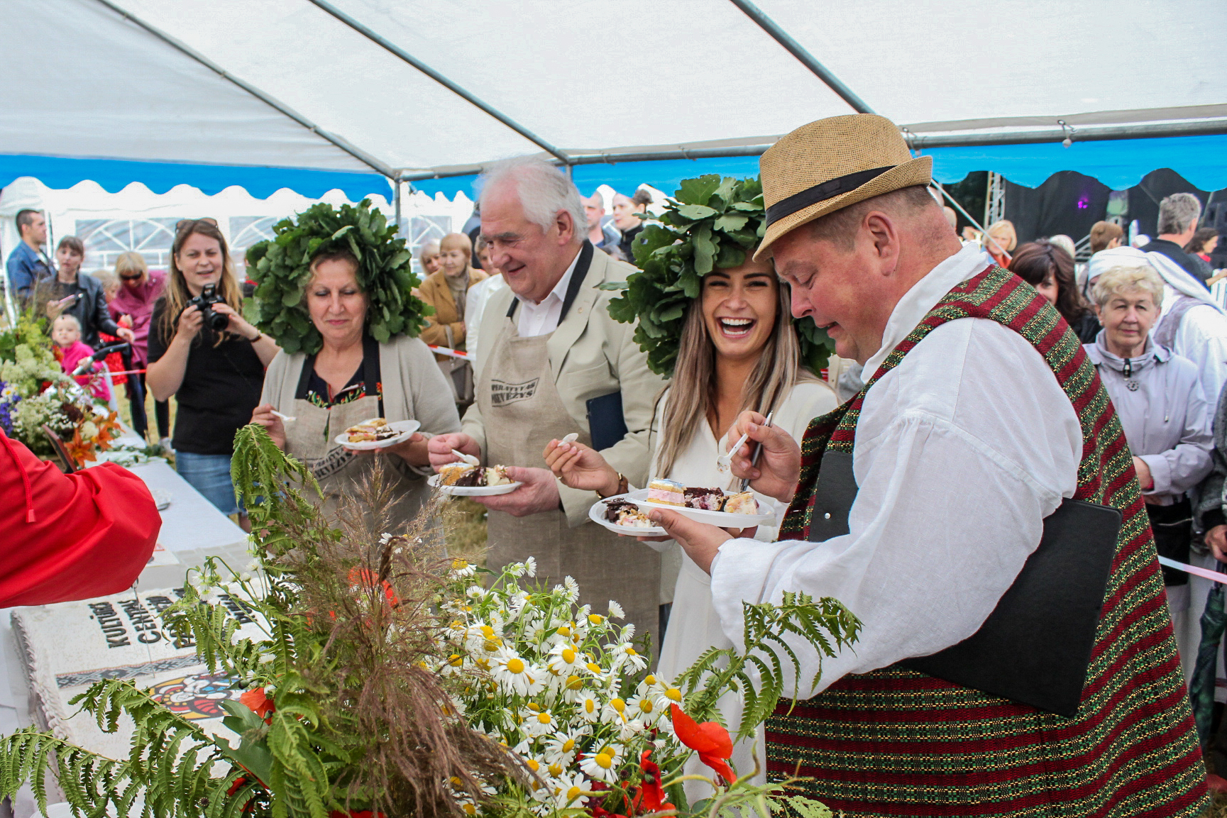 O kokios Joninės be vaišių ir linksmybių. Jau tapo tradicija, kad per Jonines panevėžiečiai dengia Vasarvidžio pyragų stalą. Ir šiemet gyventojų bendruomenės, seniūnaitijos, įvairios organizacijos iškepė net trylika gardžiausių vasaros spalvomis išdailintų pyragų – tiesiog burnoje tirpstančių gardėsių užteko visiems smaližiams.