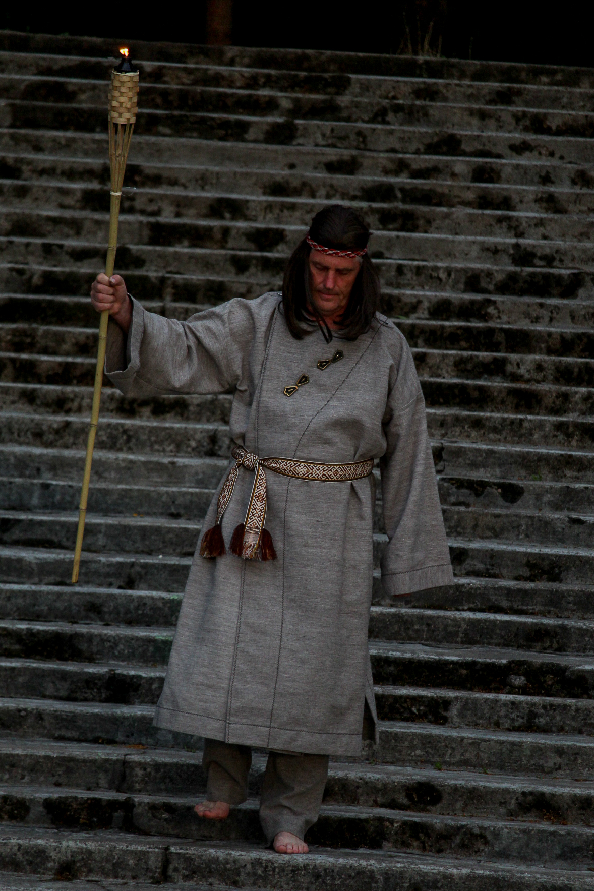 Tačiau bene labiausiai visus sužavėjo užburianti ugnies garbinimo ir saulutės sodinimo ceremonija. Amfiteatro laiptais nusileidęs žynys, lydimas didžiulio būrio jaunuolių, nešinų degančiais deglais, įžiebė aikštės centre sukrautą laužą. Kol jaukiai spragsėjo malkos, jaunos merginos upe plukdė vainikėlius. Paskutiniai šventės dalyviai sulaukė ir trumpiausios šiais metais nakties.