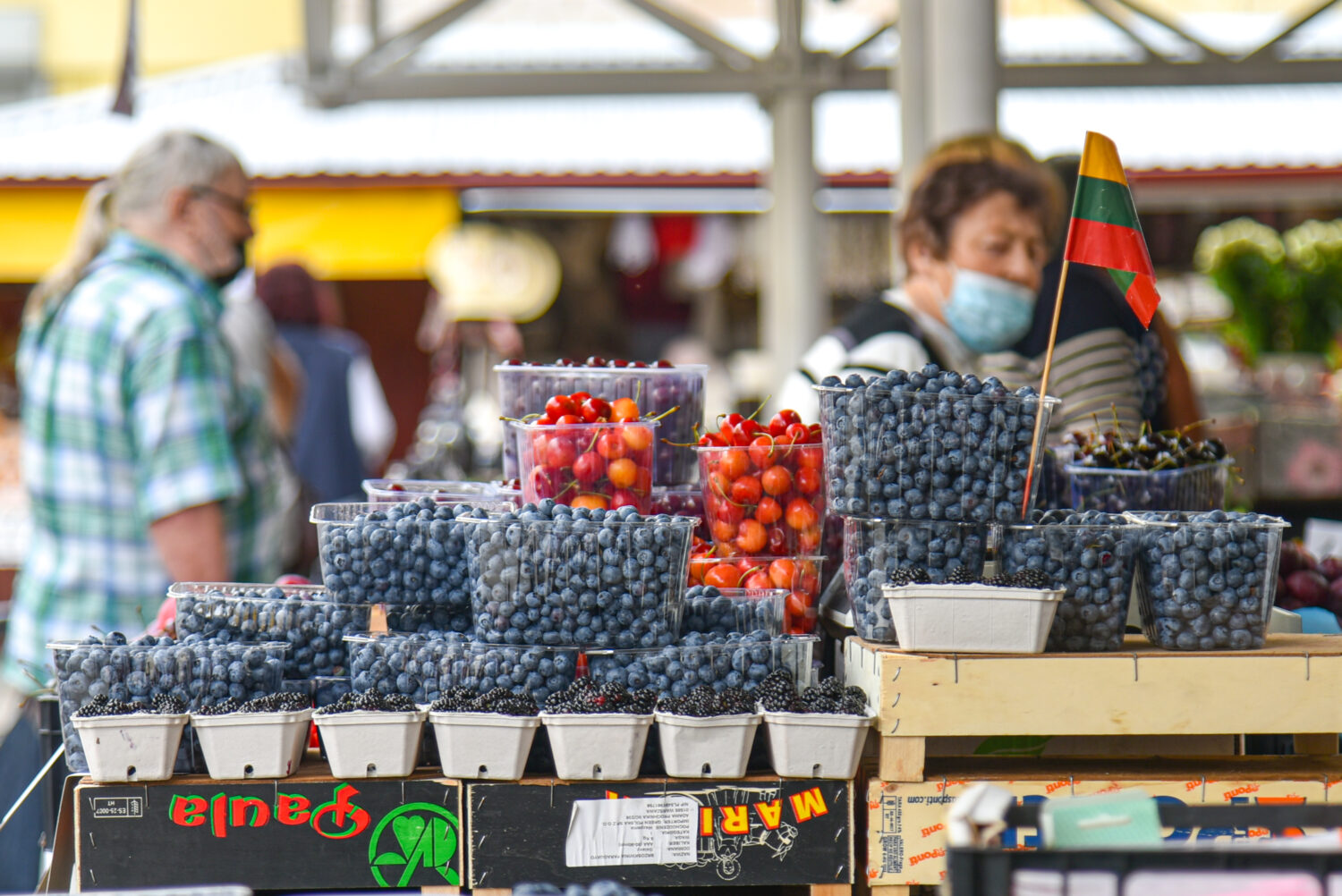 Vitalija Joana prisistačiusi moteris vakar pardavinėjo mėlynes. Paaiškino, kad rinktos jos Žaliojoje girioje. Pardavėja sakė, kad ankstesniais metais mėlynių litrą galėjai pririnkti kone vienu pritūpimu, šiemet šių uogų reikia ieškoti kaip grybų.