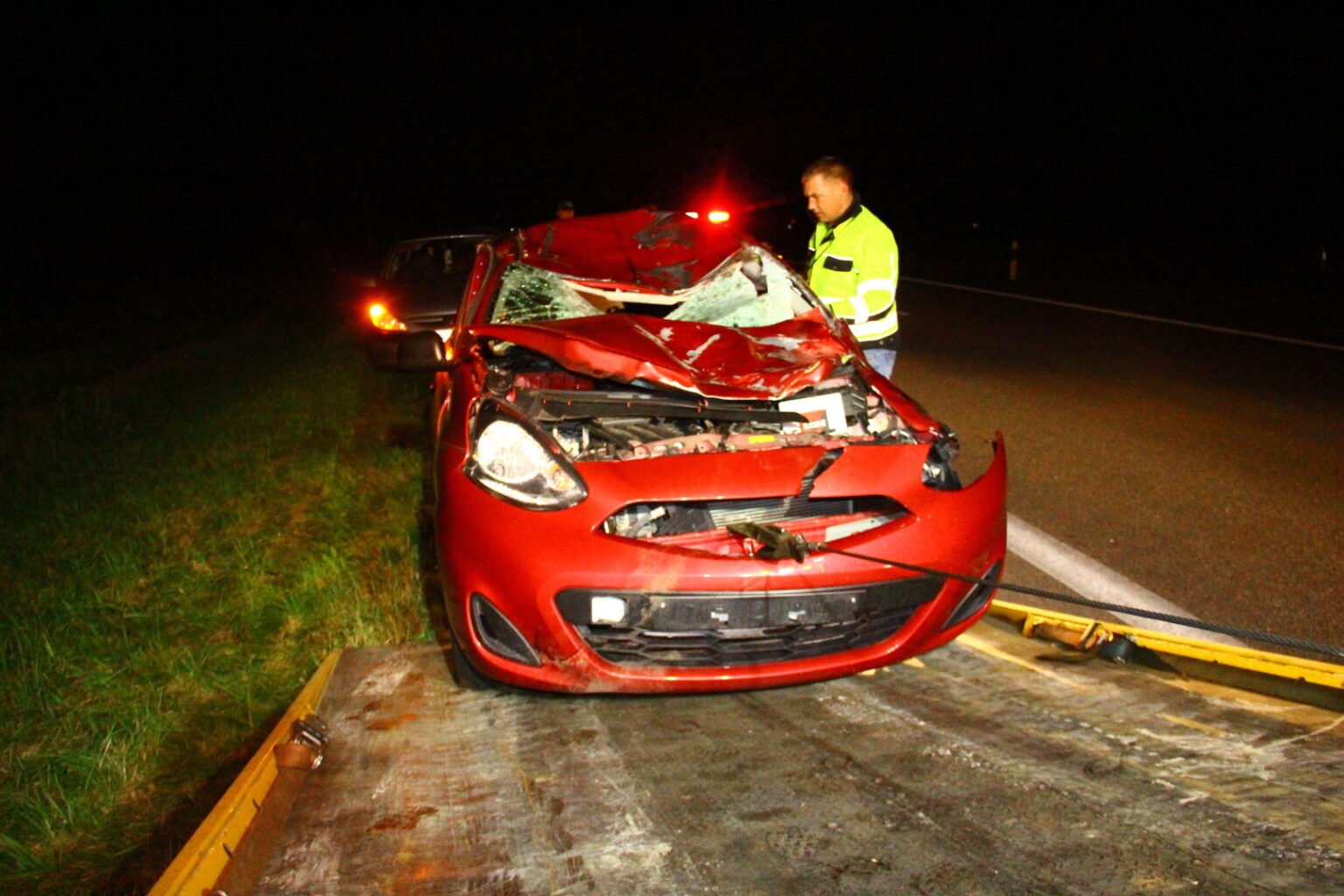 Automobilis apgadintas smarkiai. Į magistralę išbėgęs ir kliudytas briedis nugaišo. Gyvūną išgabeno į įvykio vietą iškviesti medžiotojai.