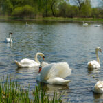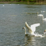 O gegužę vyksta tiek gulbių nebylių, tiek gulbių giesmininkių, perinčių šiaurėje, migracija.