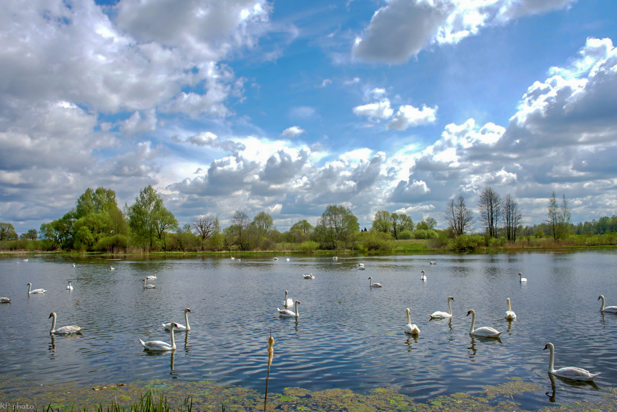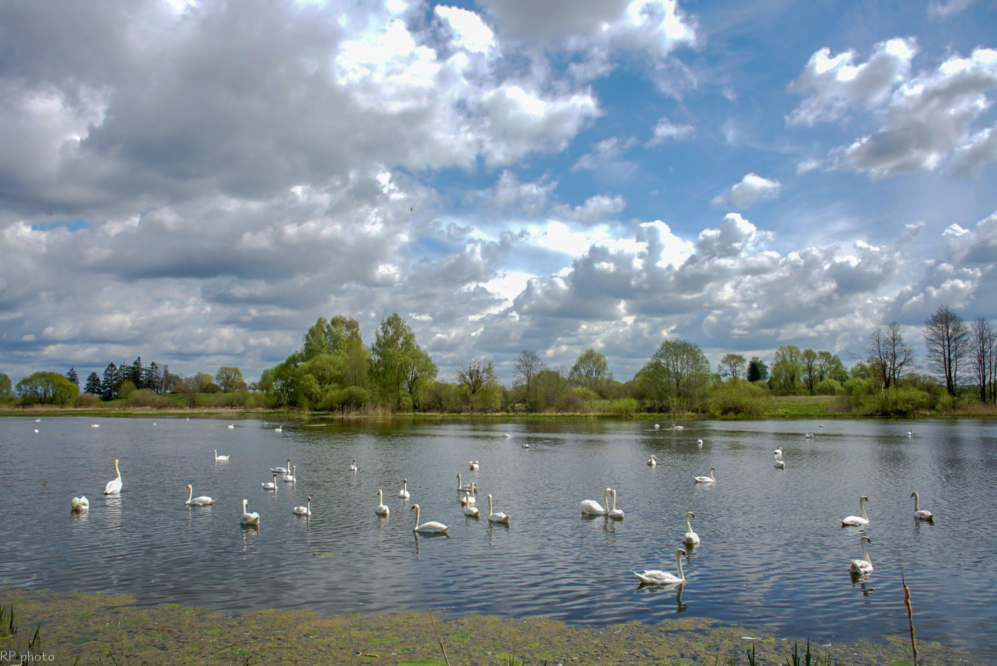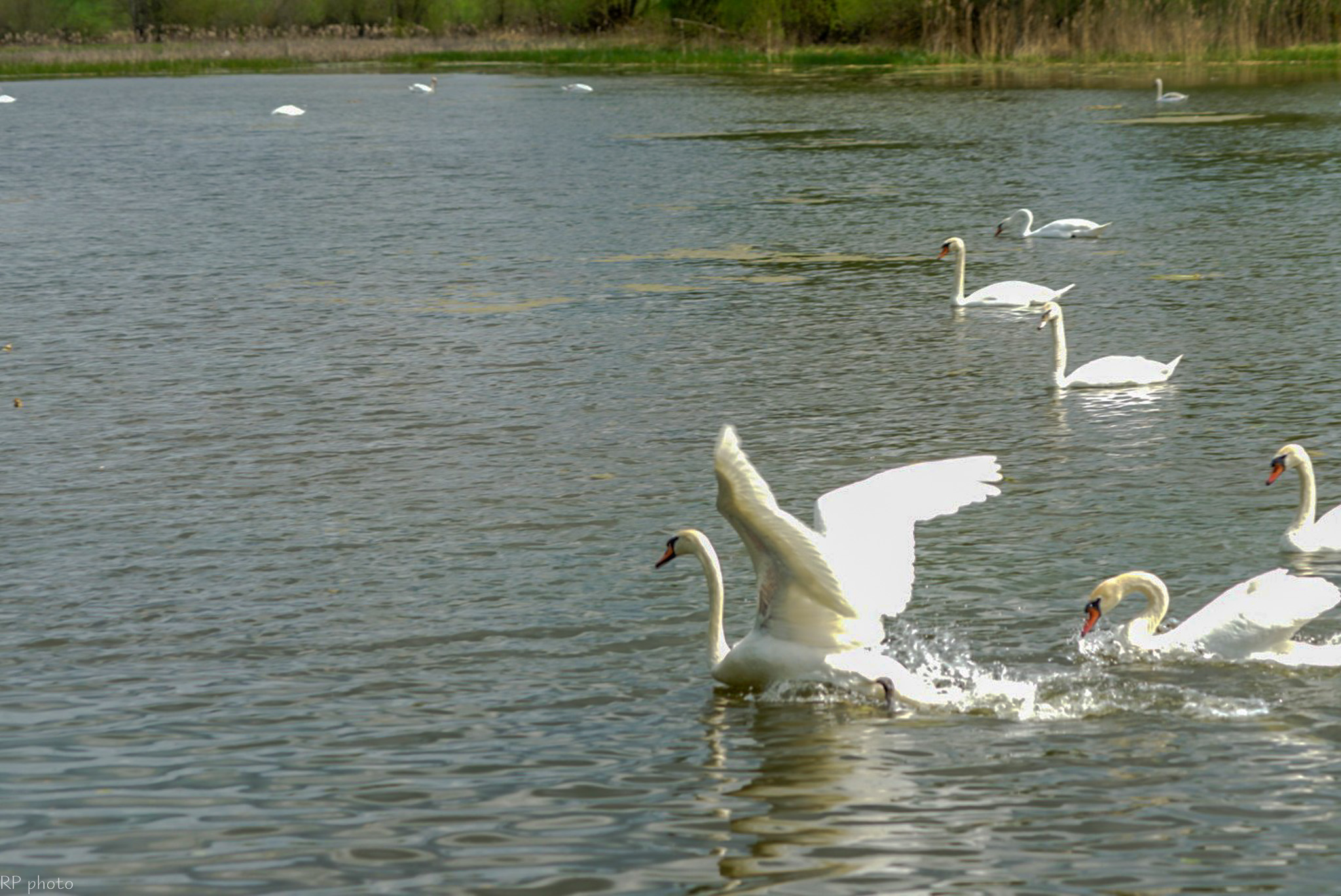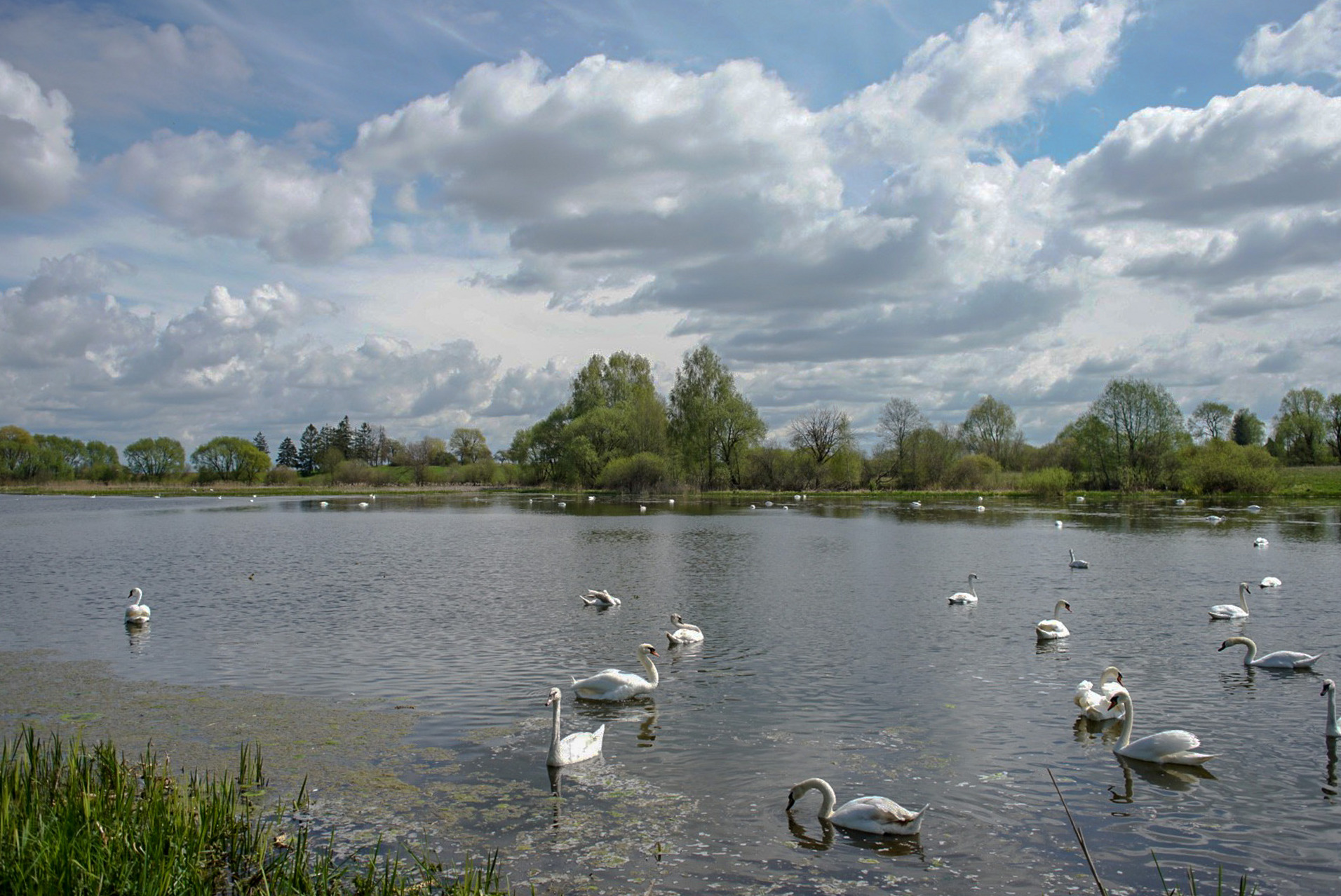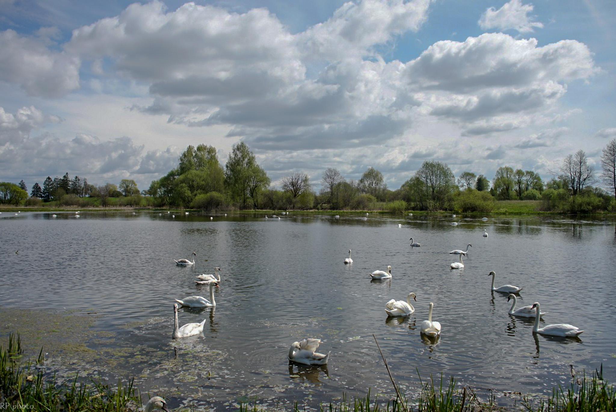 Šią savaitę pirmą kartą šį tvenkinį aplankęs panevėžietis Raimundas Povilonis negalėjo atsigrožėti vienoje vietoje išvydęs apie šešias dešimtis gulbių ir didelius pulkus kitų vandens paukščių.