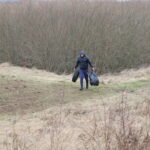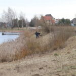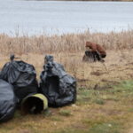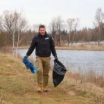 Būrelis savanorių šeštadienio rytą nepabūgo žvarbaus vėjo ir atvyko prie Molainių tvenkinio išvalyti jo pakrantes nuo šiukšlių.