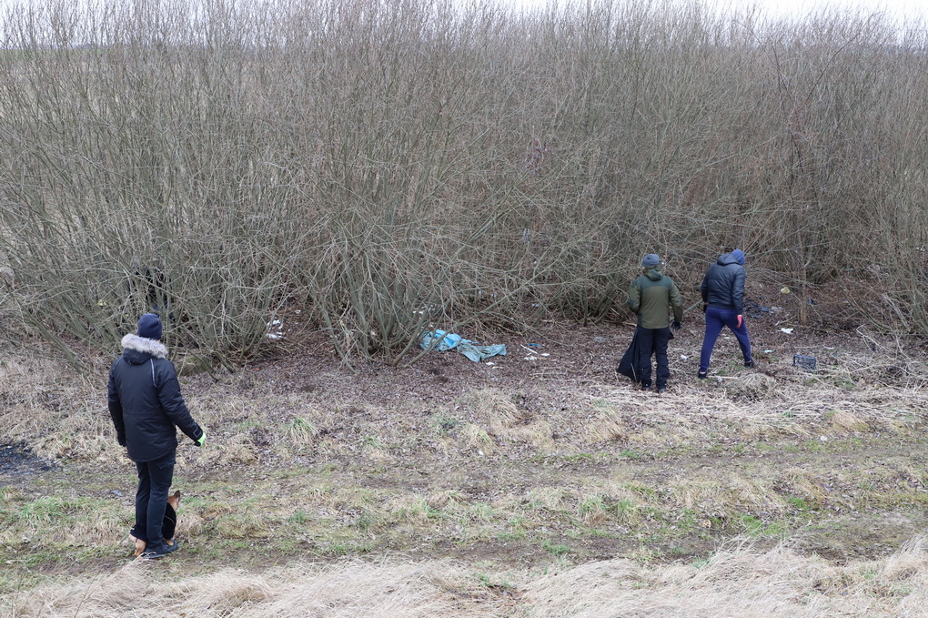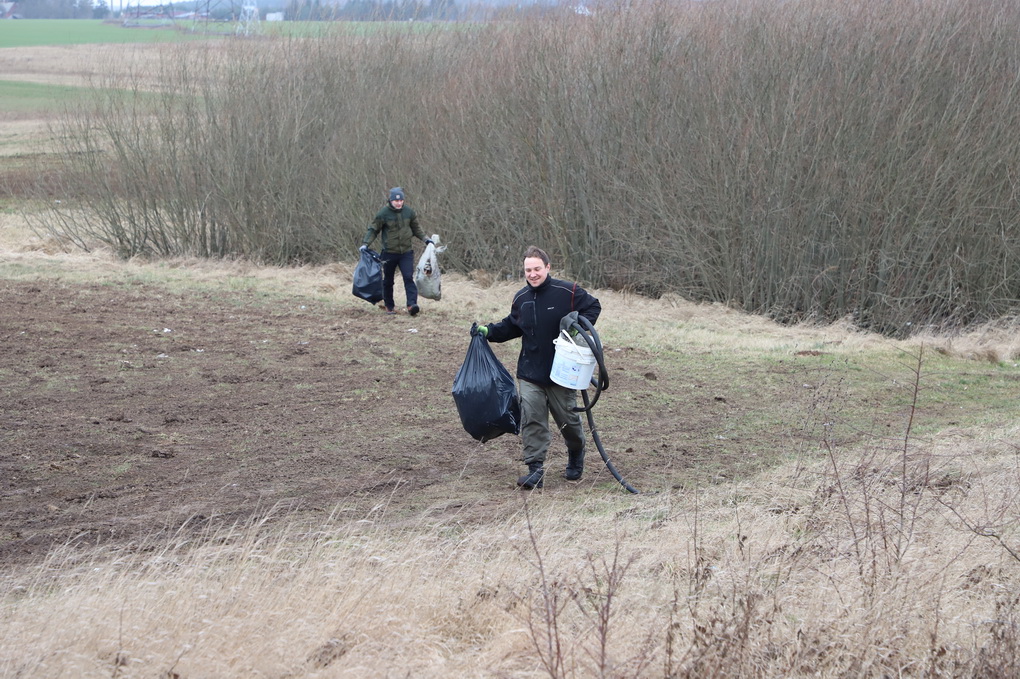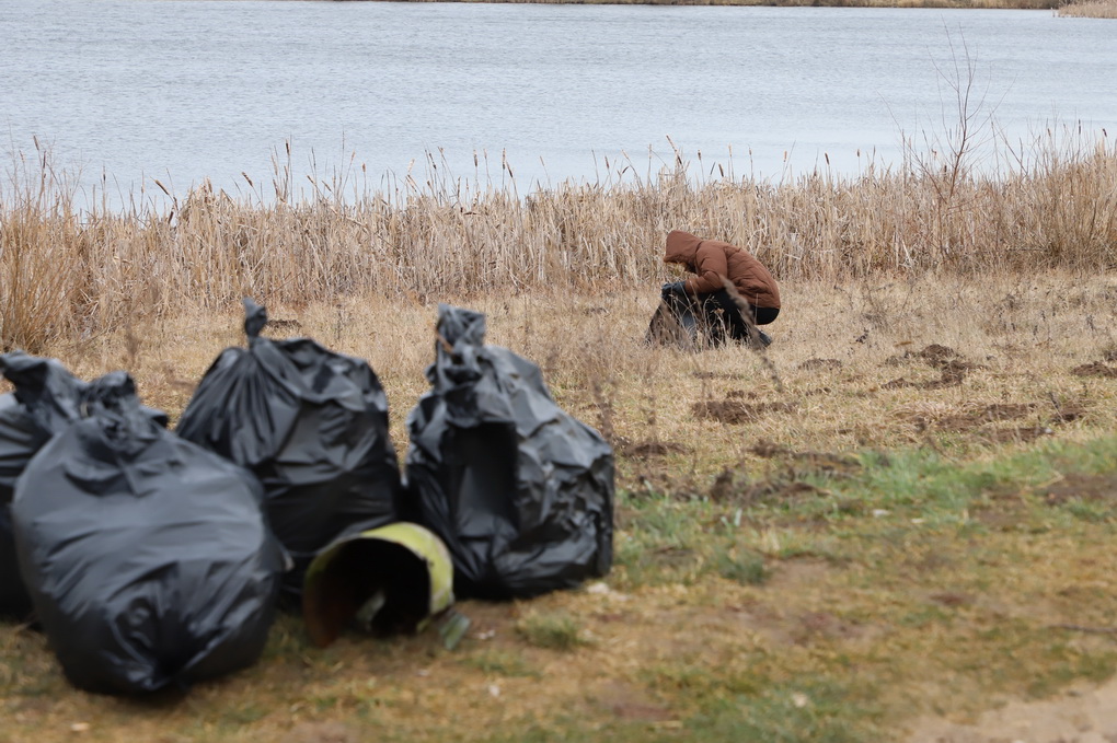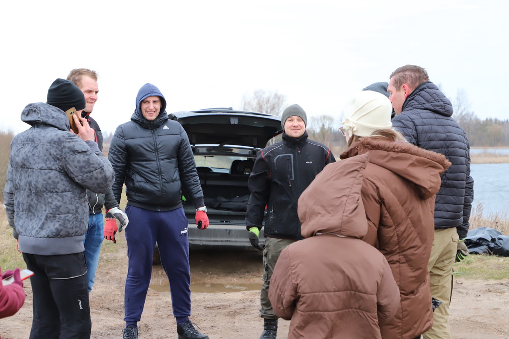 Būrelis savanorių šeštadienio rytą nepabūgo žvarbaus vėjo ir atvyko prie Molainių tvenkinio išvalyti jo pakrantes nuo šiukšlių.