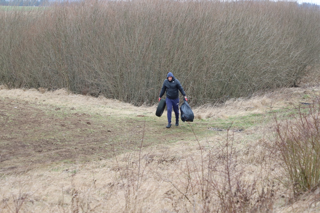 Padirbėti gamtos naudai panoro apie dešimt savanorių. Daugiausia vyrų, kurie pirmiausia griebėsi išmėtytų senų padangų ir po geros valandos su trupučiu jų jau buvo pririnkę 110.