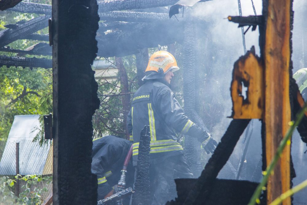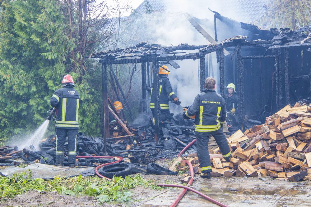 „Penkių minučių darbas. Tik vyras išėjo ir kaimynė atlėkė pasakyti, kad degam“, – sakė šalia visiškai sudegusios malkinės ugniagesių darbą stebėjusi Dalia.