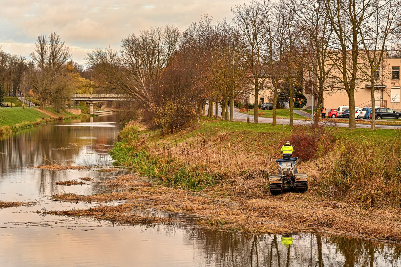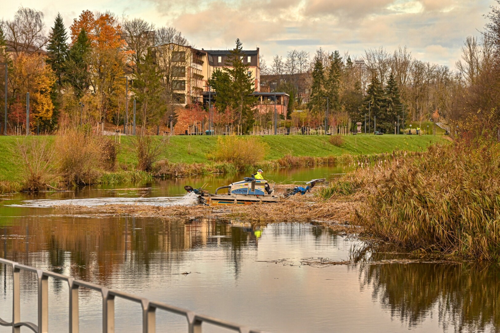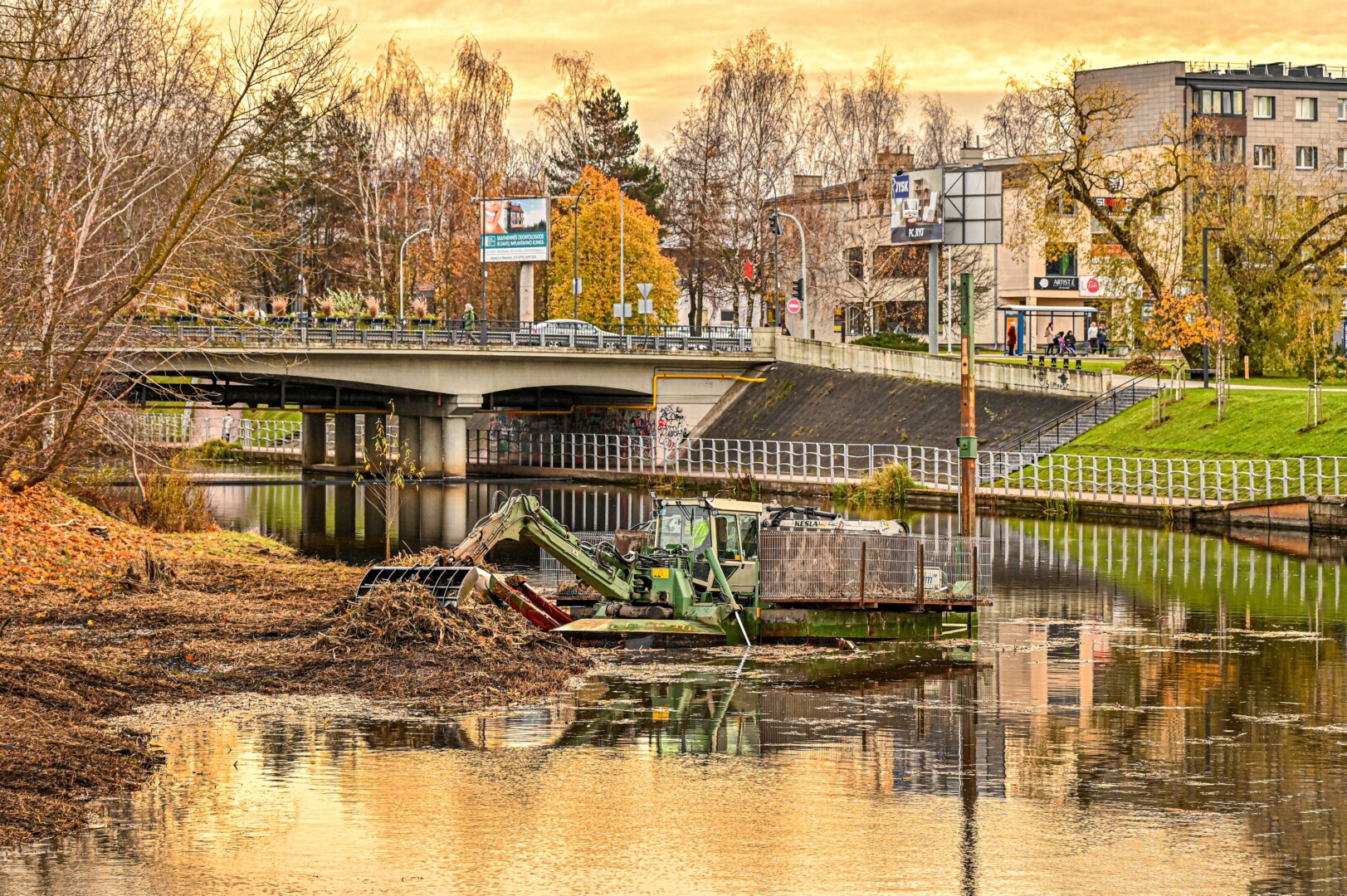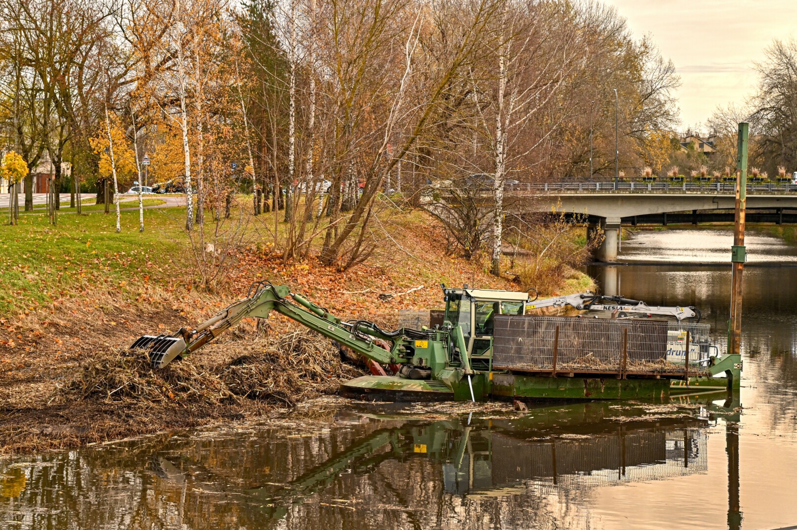 Panevėžio savivaldybės Miesto infrastruktūros skyriaus specialistės Rūtos Taučikienės teigimu, Nevėžio upėje, netoli Smėlynės gatvės tilto, pjauti vandens augalai. Šie upės šienavimo darbai atliekami specialia vandens technika.
