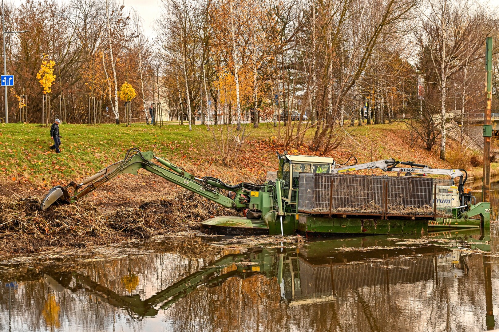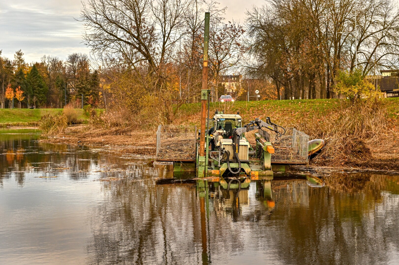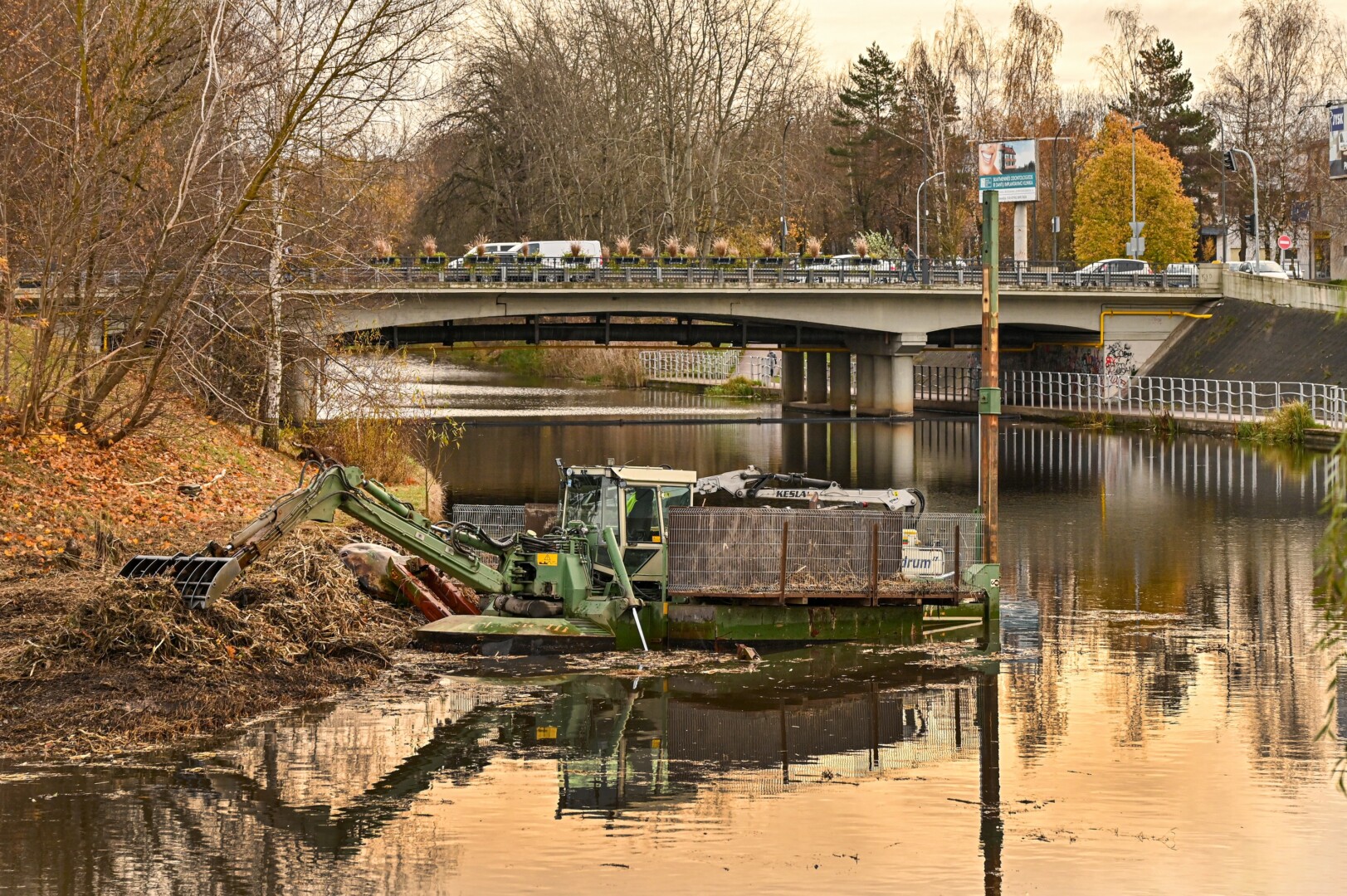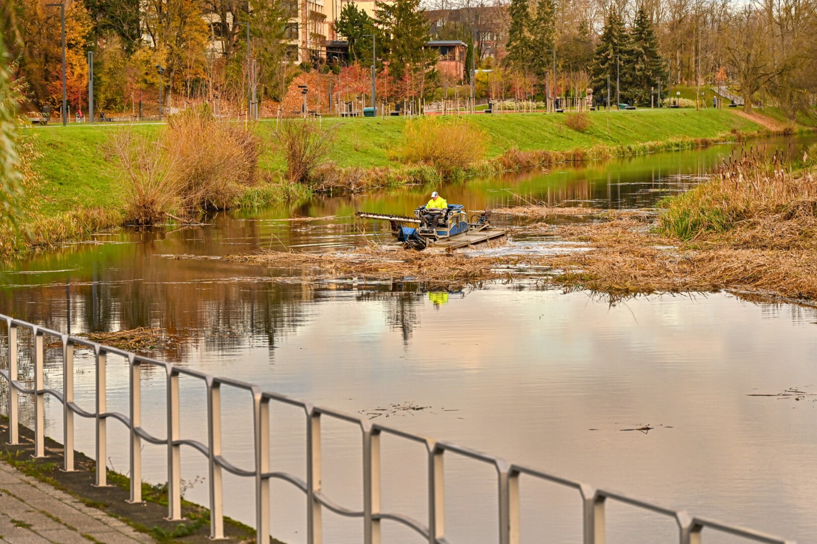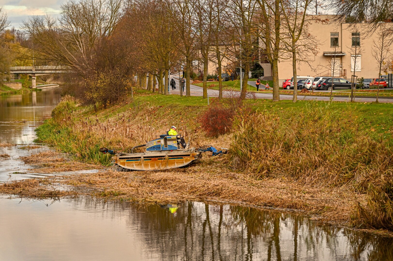 Panevėžio savivaldybės Miesto infrastruktūros skyriaus specialistės Rūtos Taučikienės teigimu, Nevėžio upėje, netoli Smėlynės gatvės tilto, pjauti vandens augalai. Šie upės šienavimo darbai atliekami specialia vandens technika.
