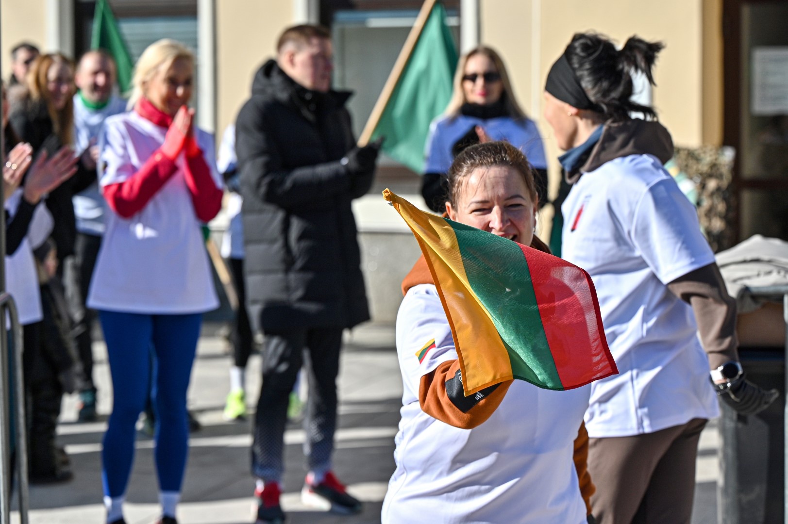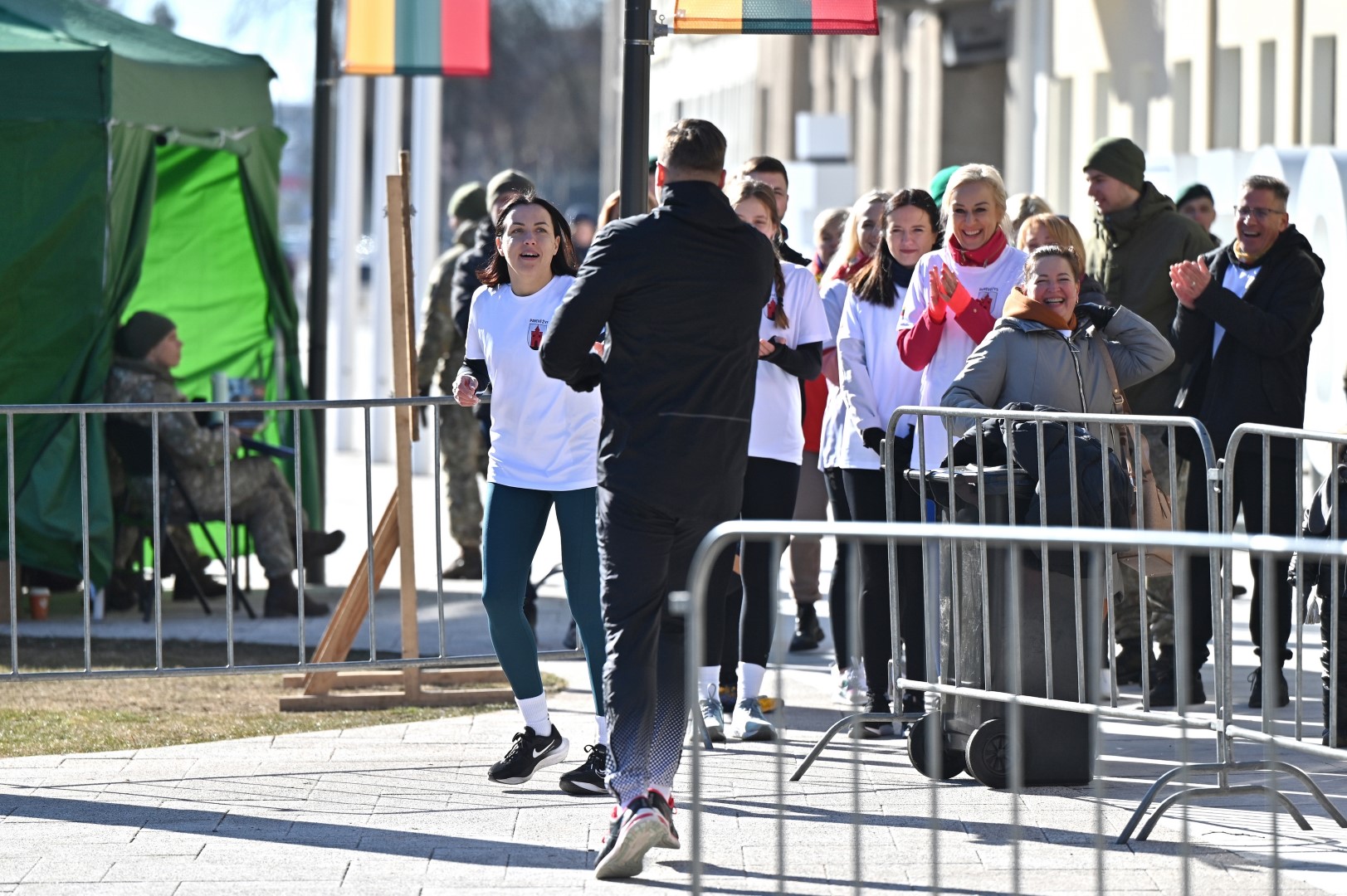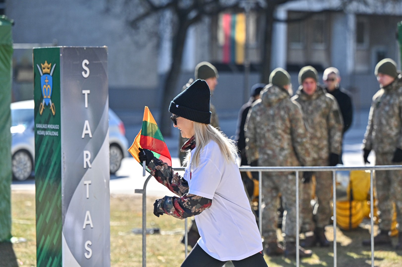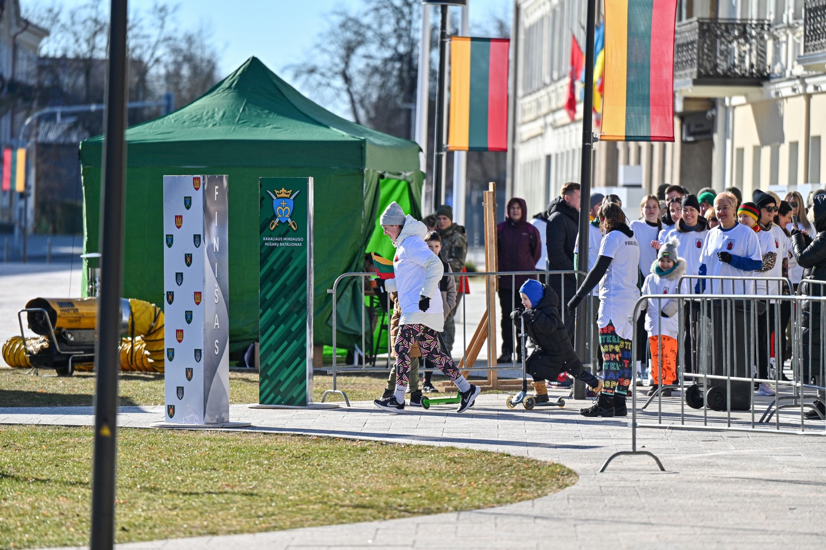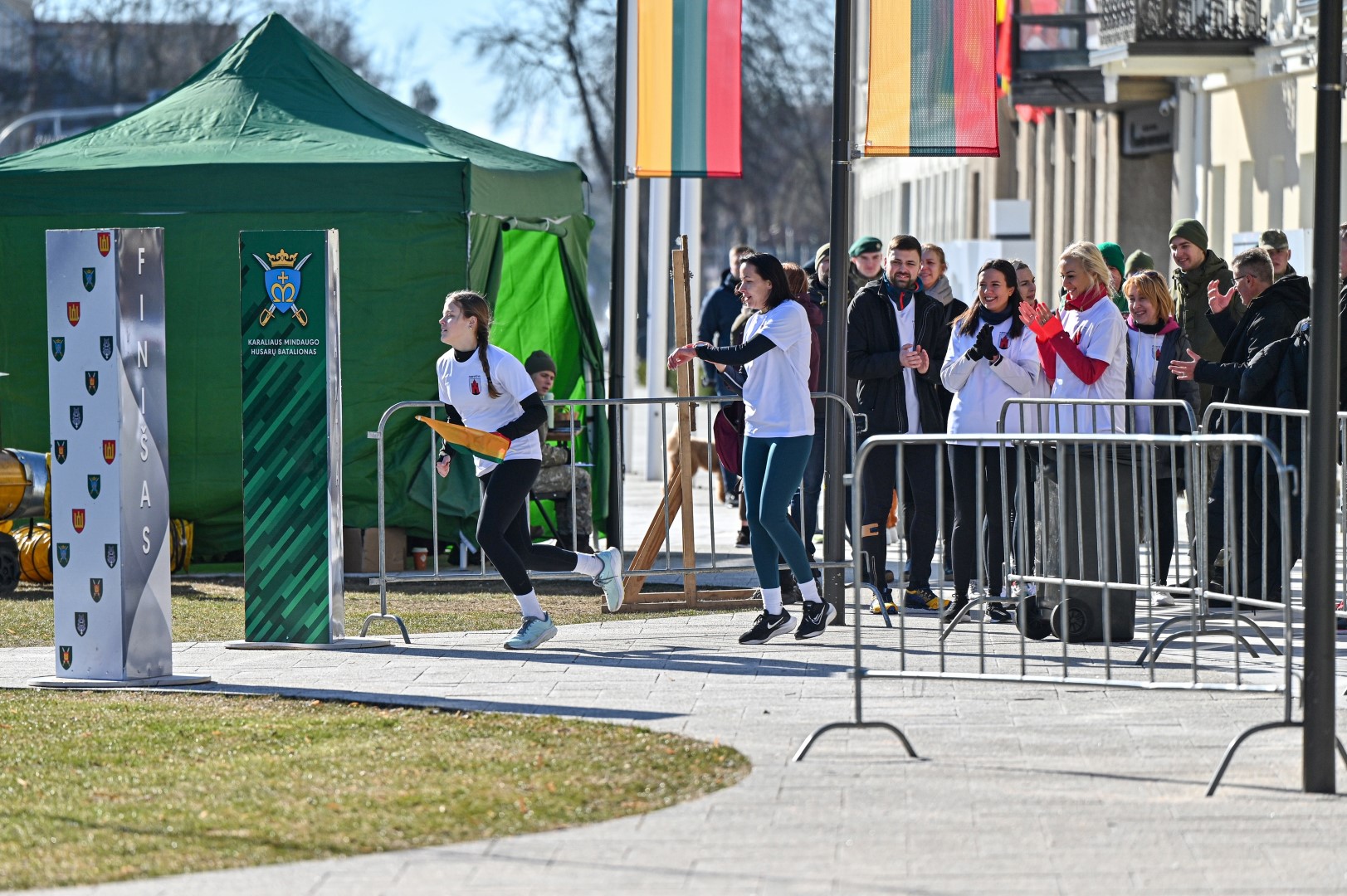 Finišuojama šventinę Kovo 11 dieną, 11.30 val., o paskutinį ratą iškilmingai apibėga bataliono kariai.