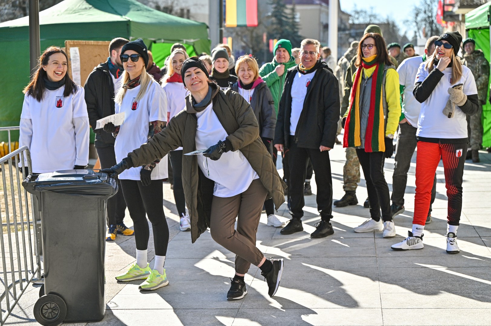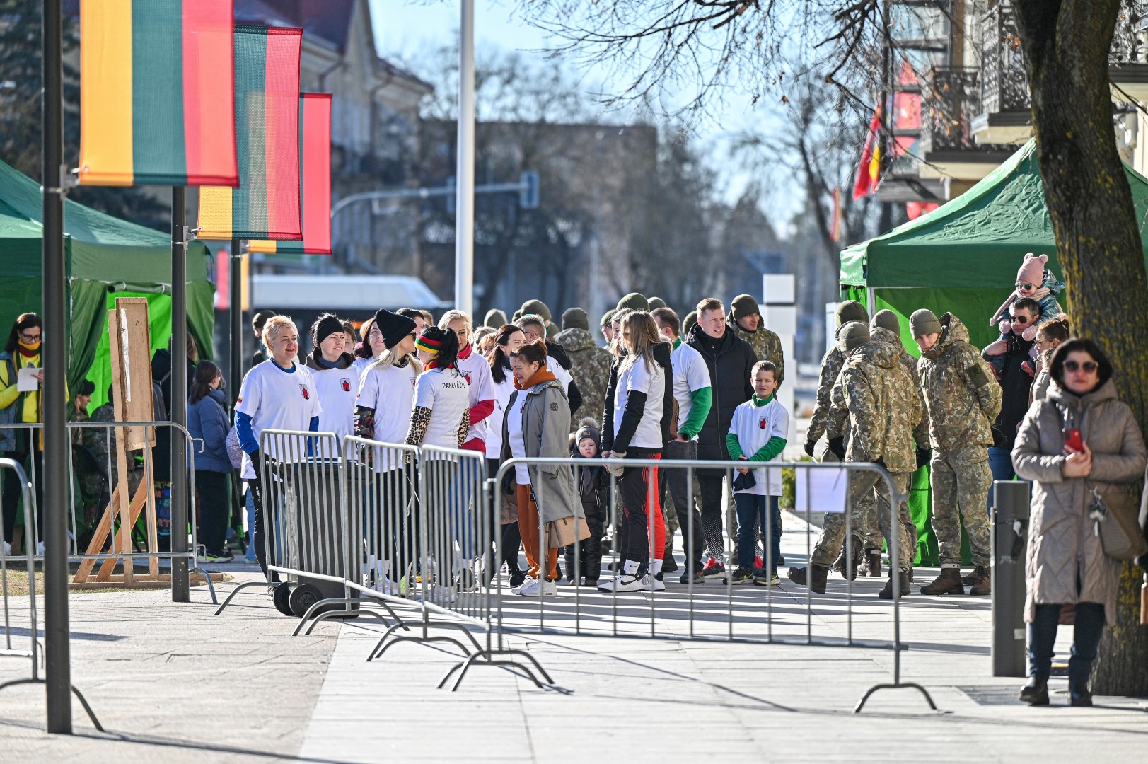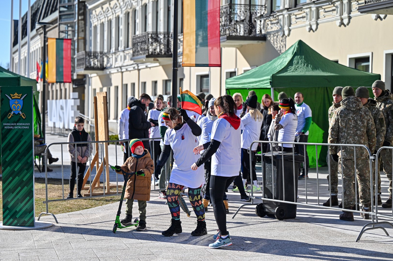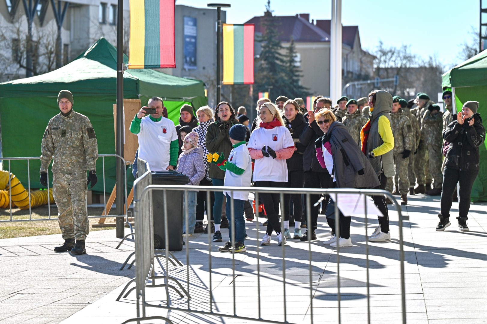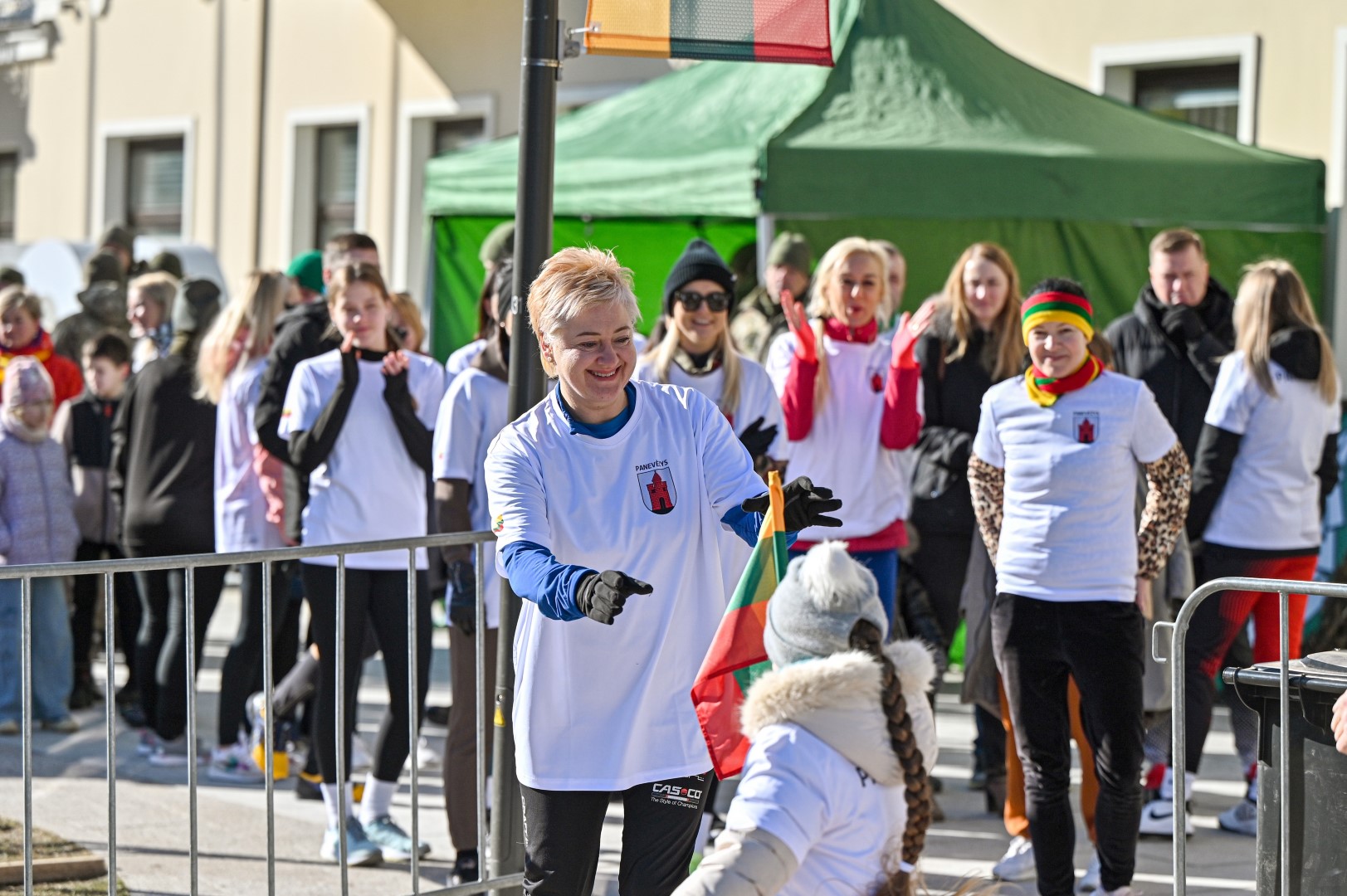 Finišuojama šventinę Kovo 11 dieną, 11.30 val., o paskutinį ratą iškilmingai apibėga bataliono kariai.