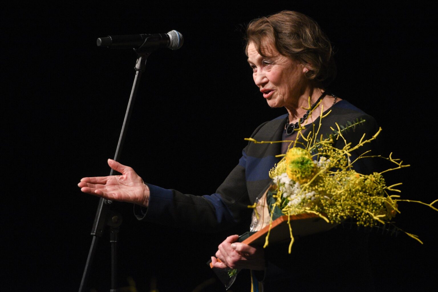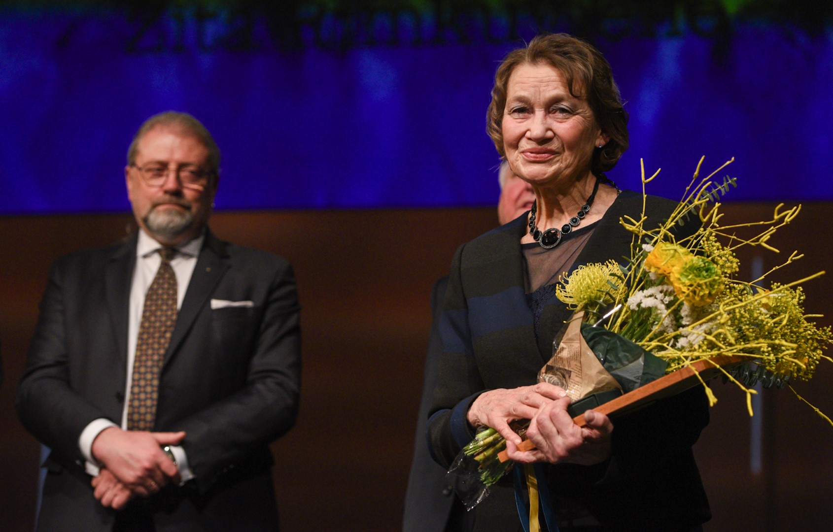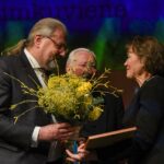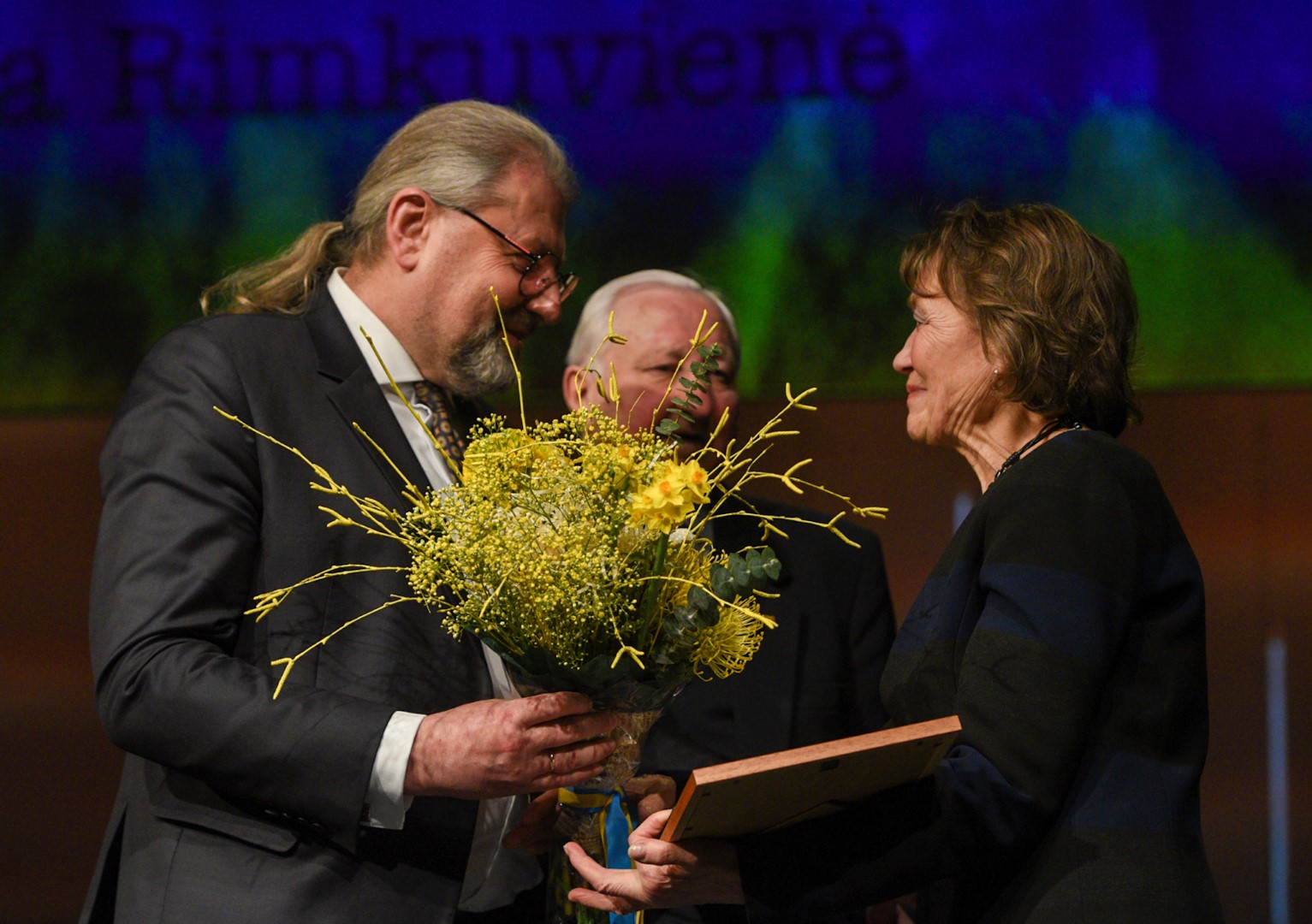 Simboliška, kad atminimo medalis, įprasminantis tarnystę Lietuvai, Z. Rimkuvienei įteiktas J. Miltinio dramos teatro scenoje.