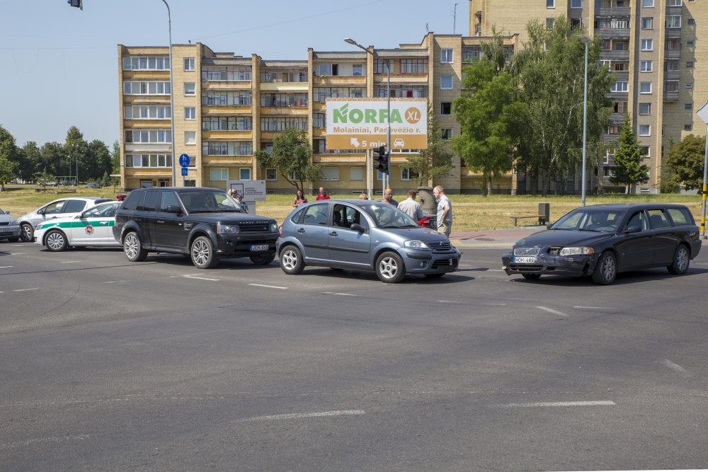 Karštas vidurdienis Panevėžyje, Nemuno ir J. Tilvyčio gatvių sankryžoje. Čia laikinai sugedus šviesoforui sankryžoje susidūrė net penki lengvieji automobiliai.