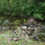 Gražūs dideli akmenys senojoje Berčiūnų gyvenvietėje atridenti ant bendro keliuko, vedančio į maudyklą ir nusidriekiančio toliau į laukus.