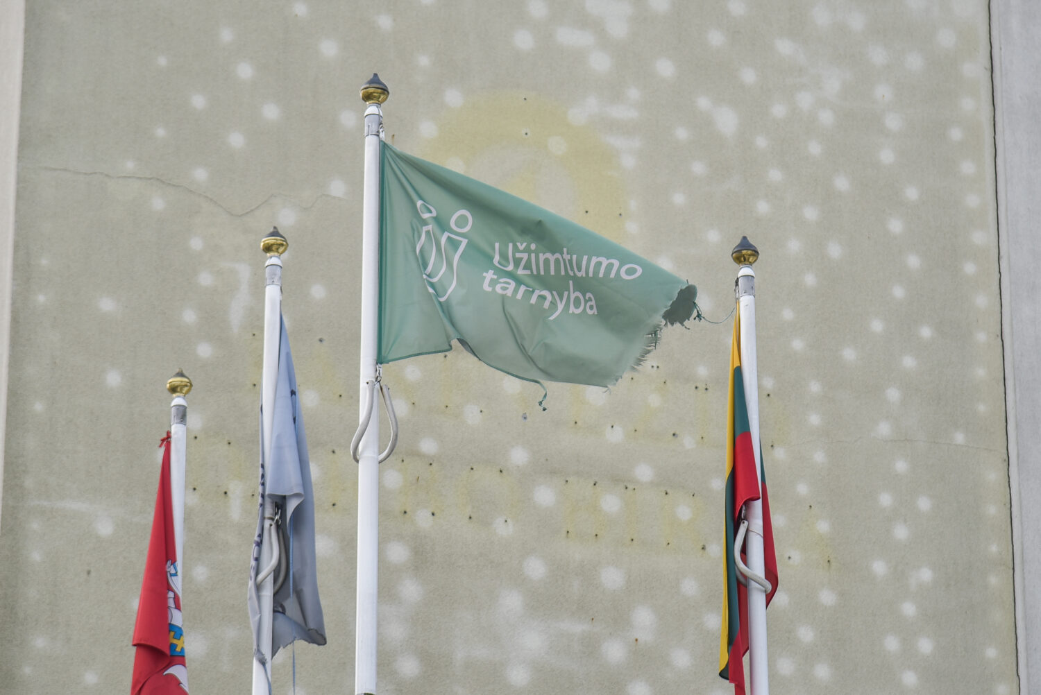 „Tikrai tokia vėliava negali kabėti“, – sutiko Užimtumo tarnybos atstovė spaudai Milda Jankauskienė, sulaukusi „Sekundės“ fotografo nuotraukų.