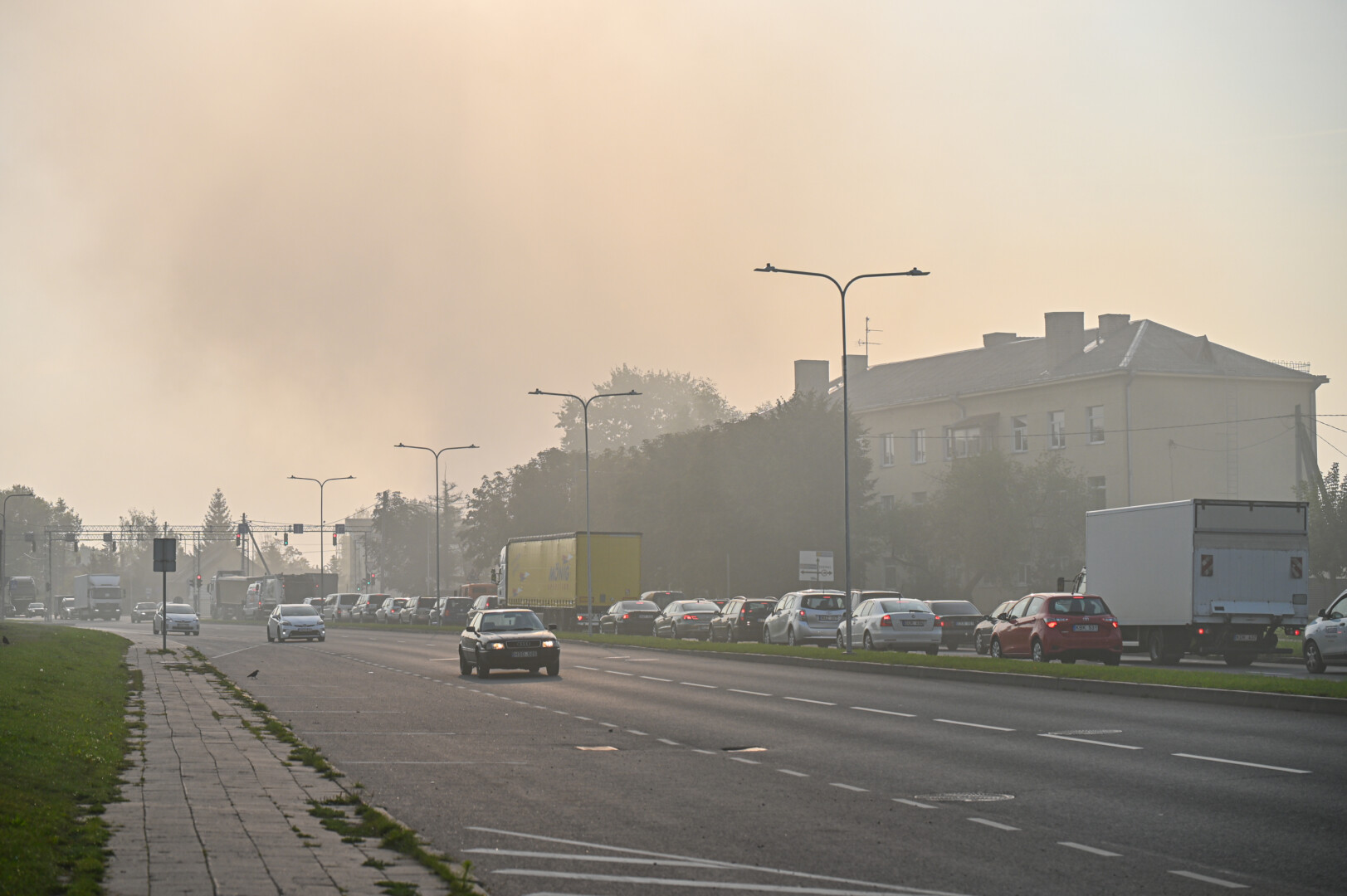 Dūmai iš „Elitėjos“ miestą temdė visą dieną. Dvokiantis debesis plaukė dar ir baigiantis darbo dienai.