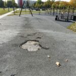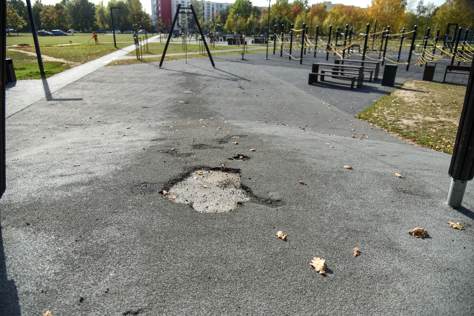 Anot jo, kol kas aiškinamasi, kodėl atsilupo vaikų aikštelės „grindinys“. Neatmetama, kad danga buvo specialiai nudrėksta prašalaičių, nes nelikę jos atplaišų.