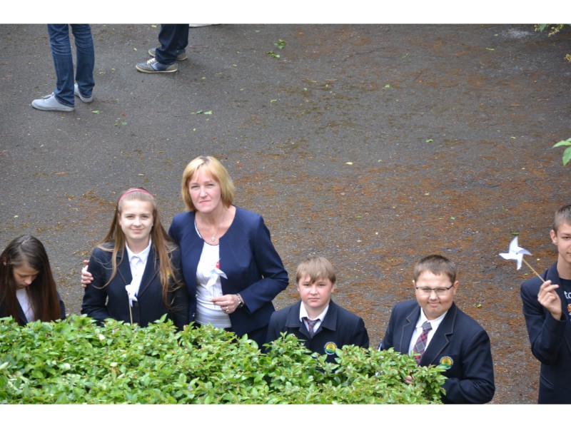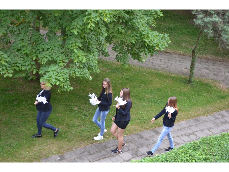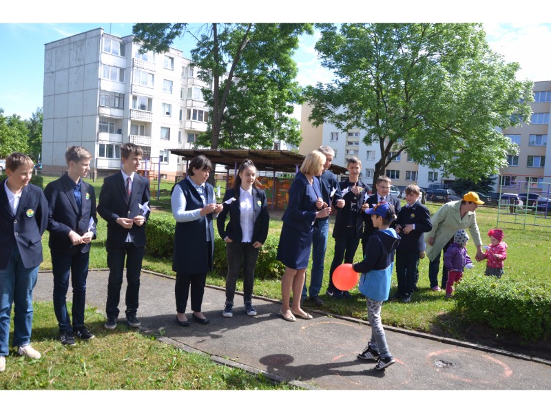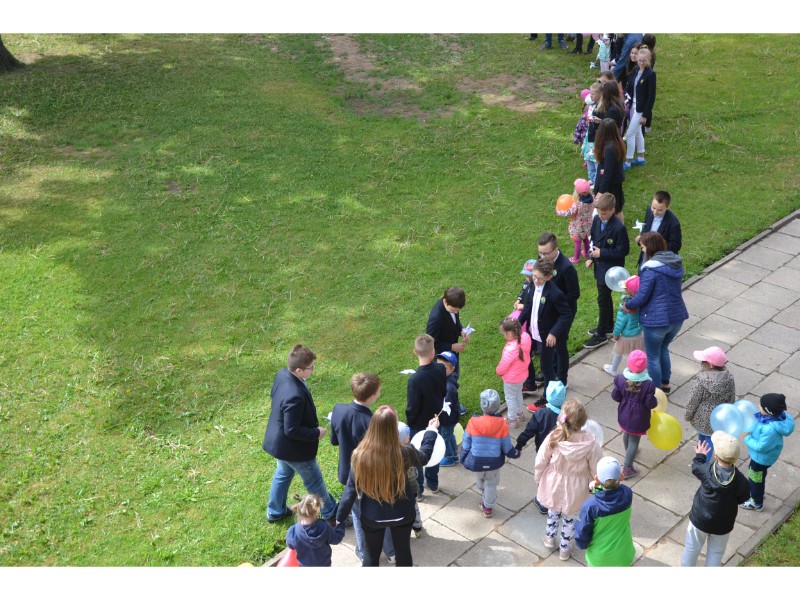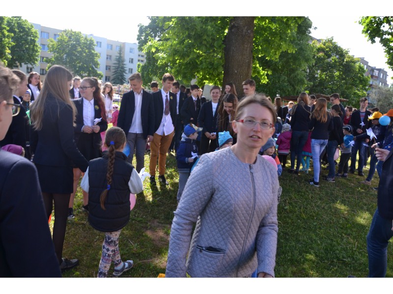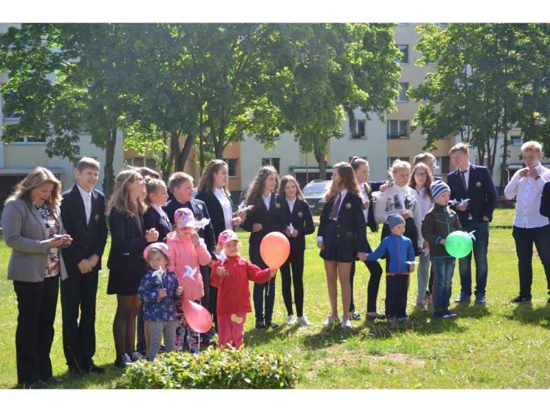 Po vaikystės šventės, vaikai, sustoję į ratelį su šūkiu „Taikos glėbys“, apsikabino, palingavo, į dangų paleido balionus su svajonėmis, linkėjimais visiems taikos, gerų akimirkų, draugiškumo, meilės, sutarimo visame pasaulyje.