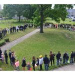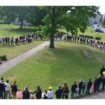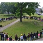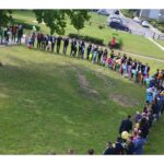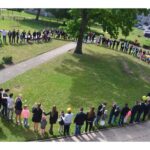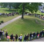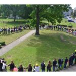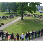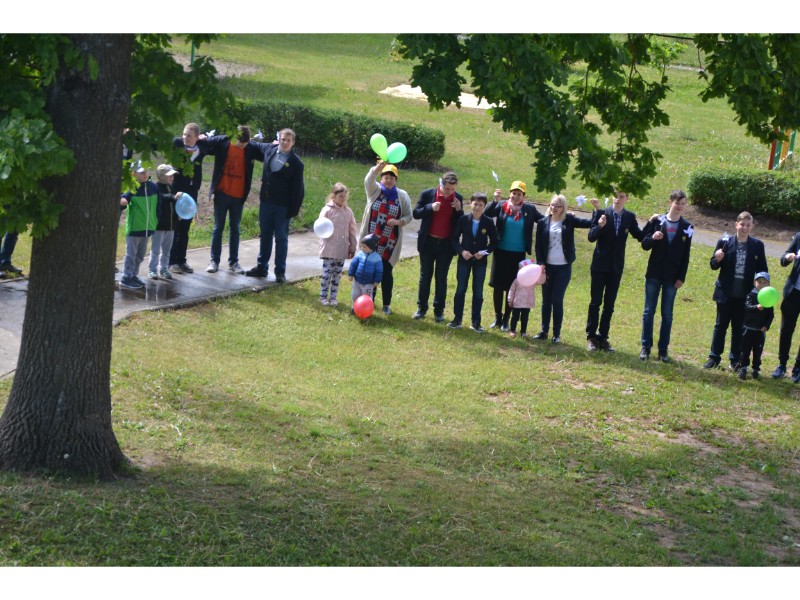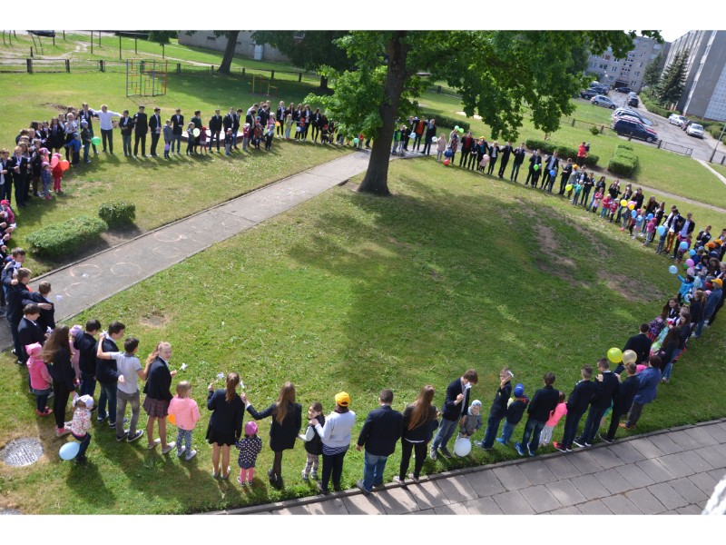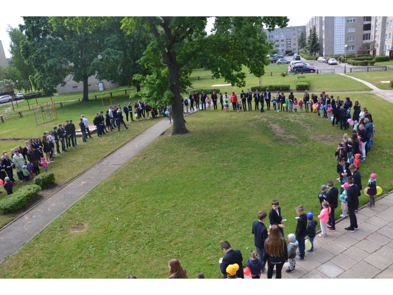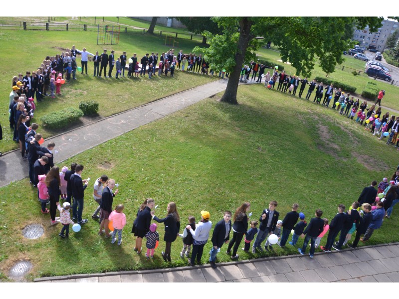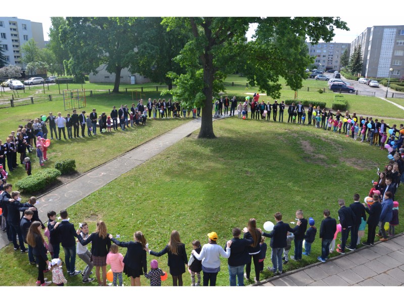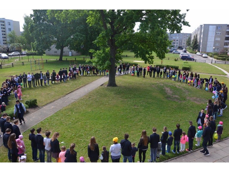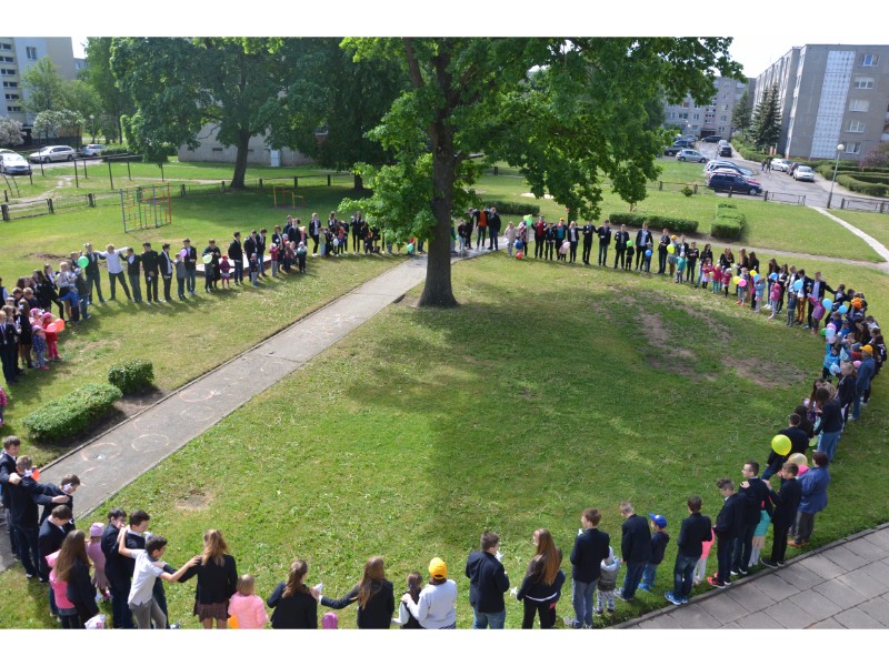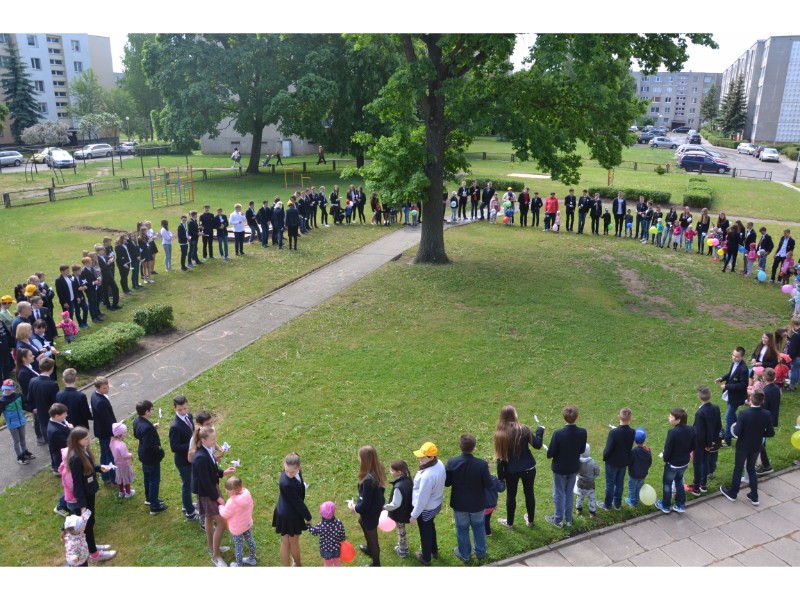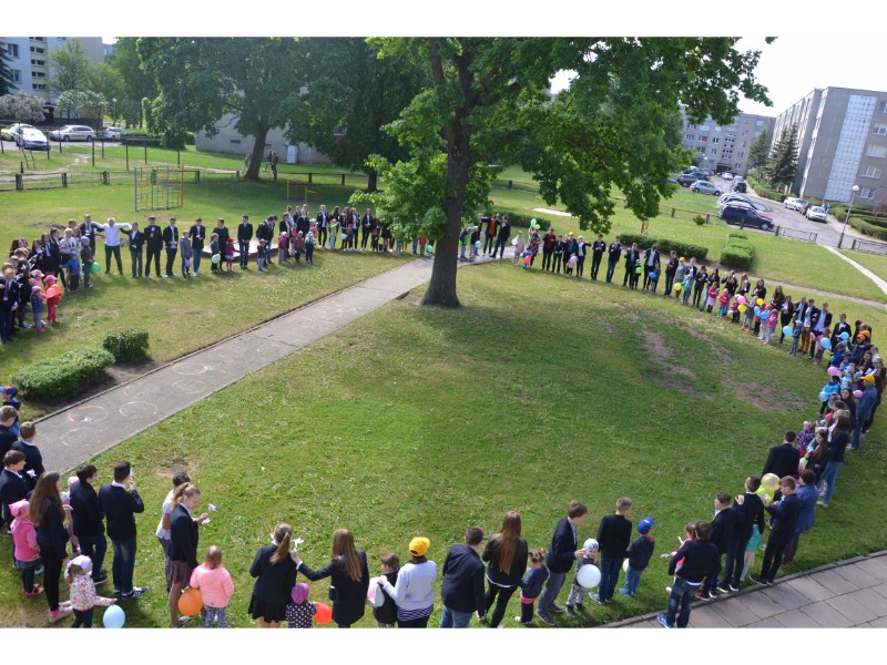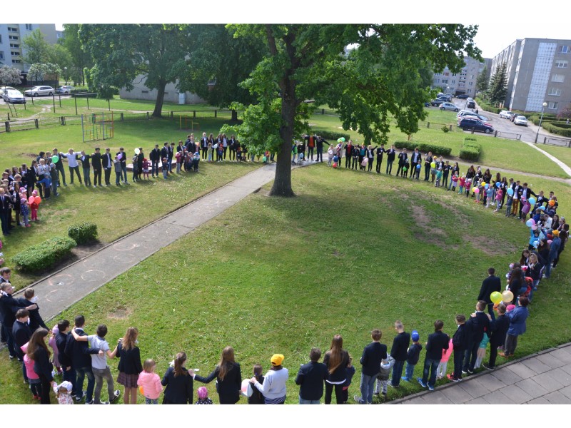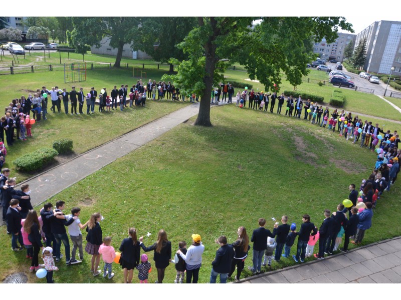 Dvi dešimtys miesto švietimo įstaigų – darželiai ir dvi progimnazijos – Vaikų gynimo dieną prisijungė prie Lietuvos rekordo siekiančios akcijos ir apsikabino už taiką.
