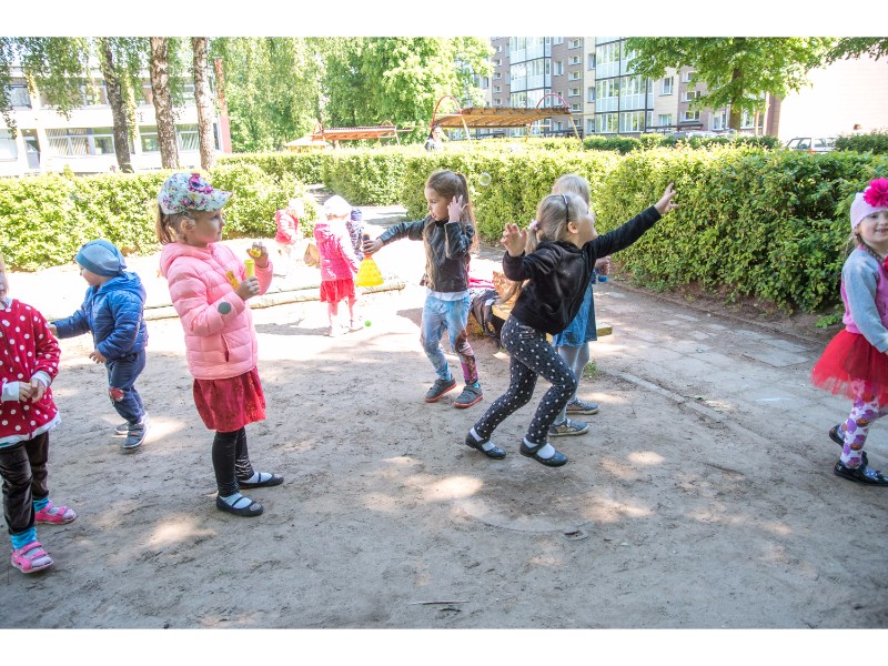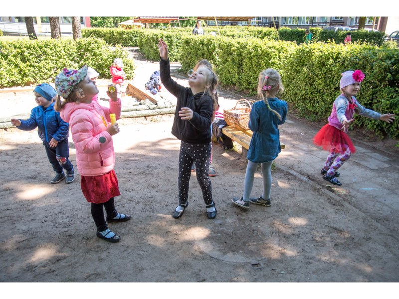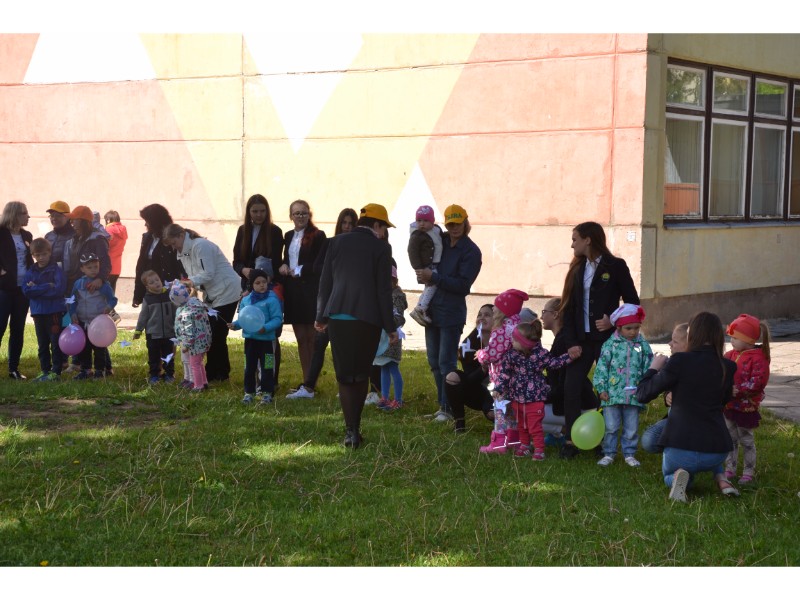 „Aušros“ lopšelyje-darželyje vaikai apkabino darželį, piešė ant asfalto, leido muilo burbulus.