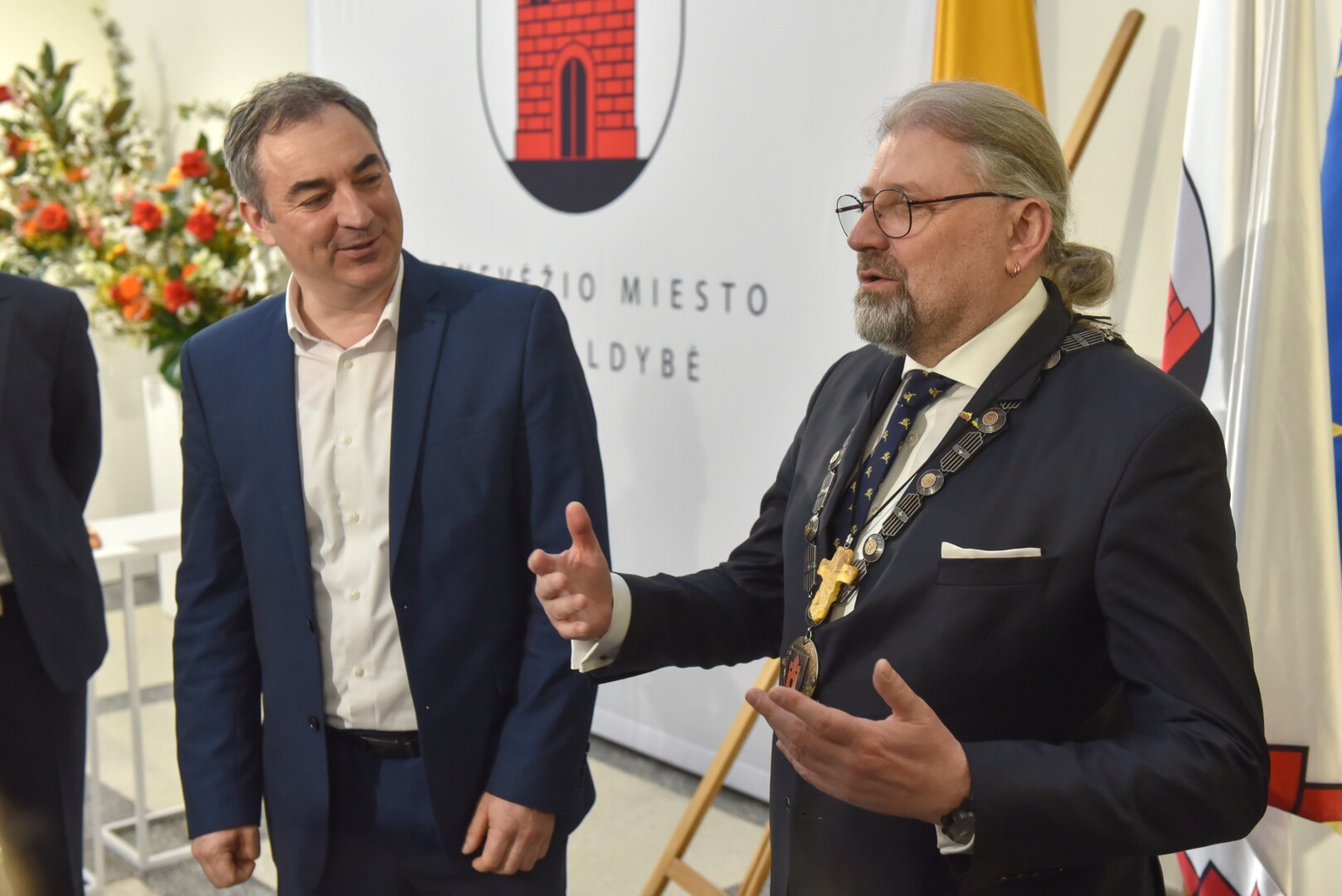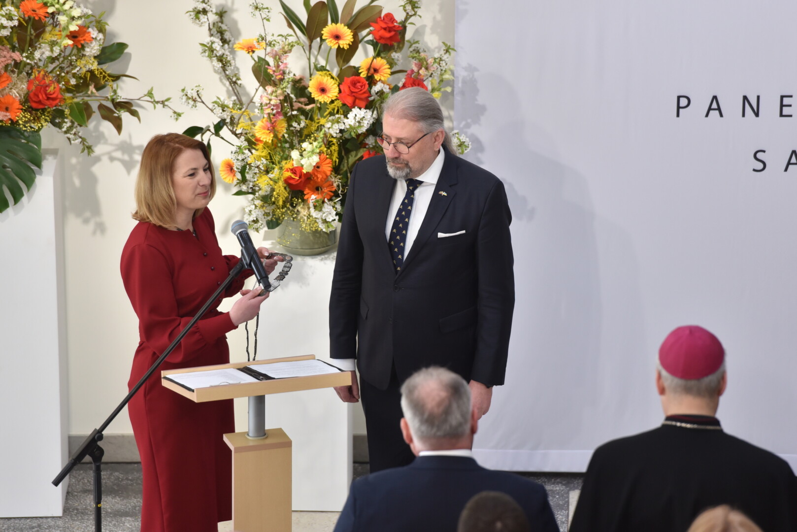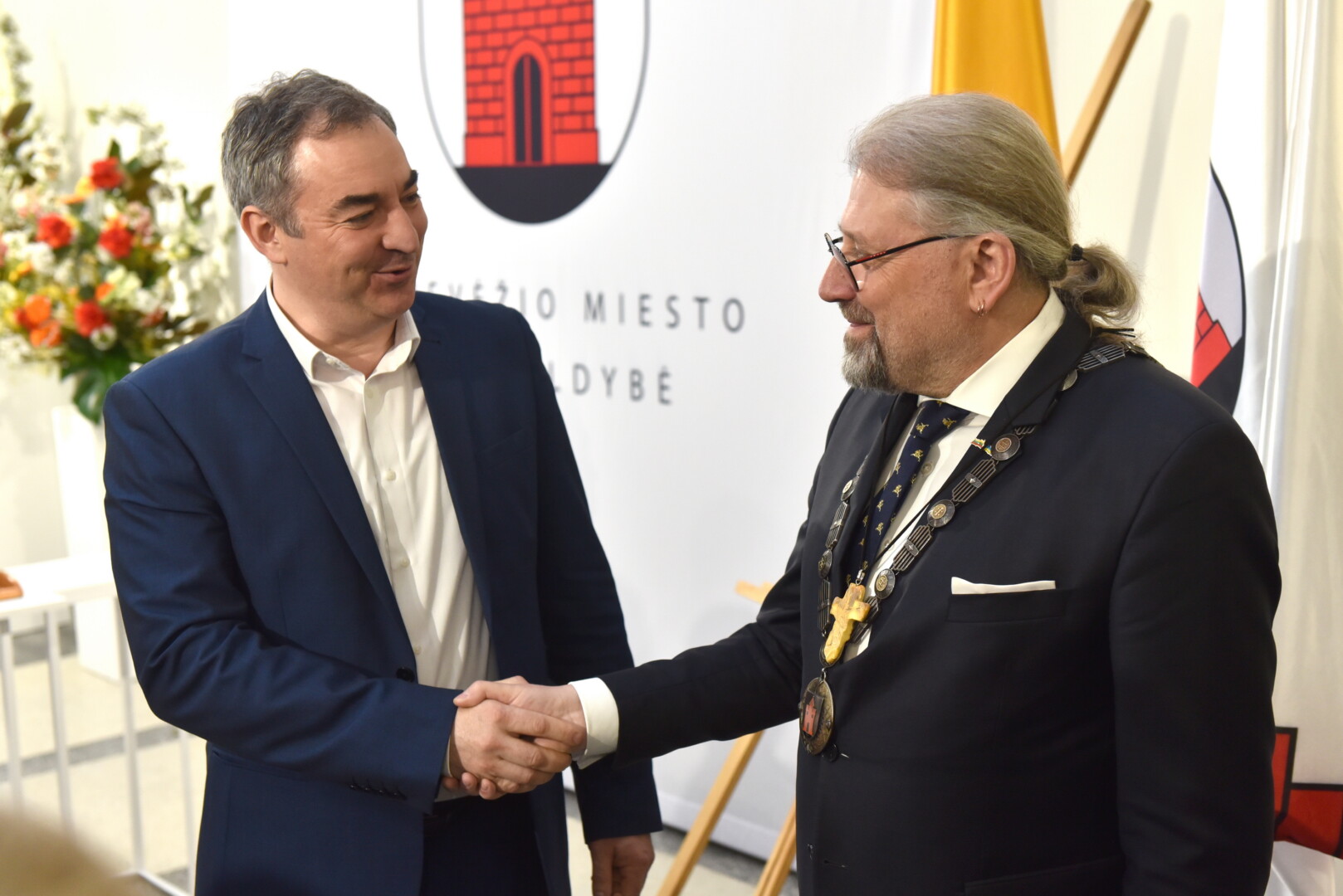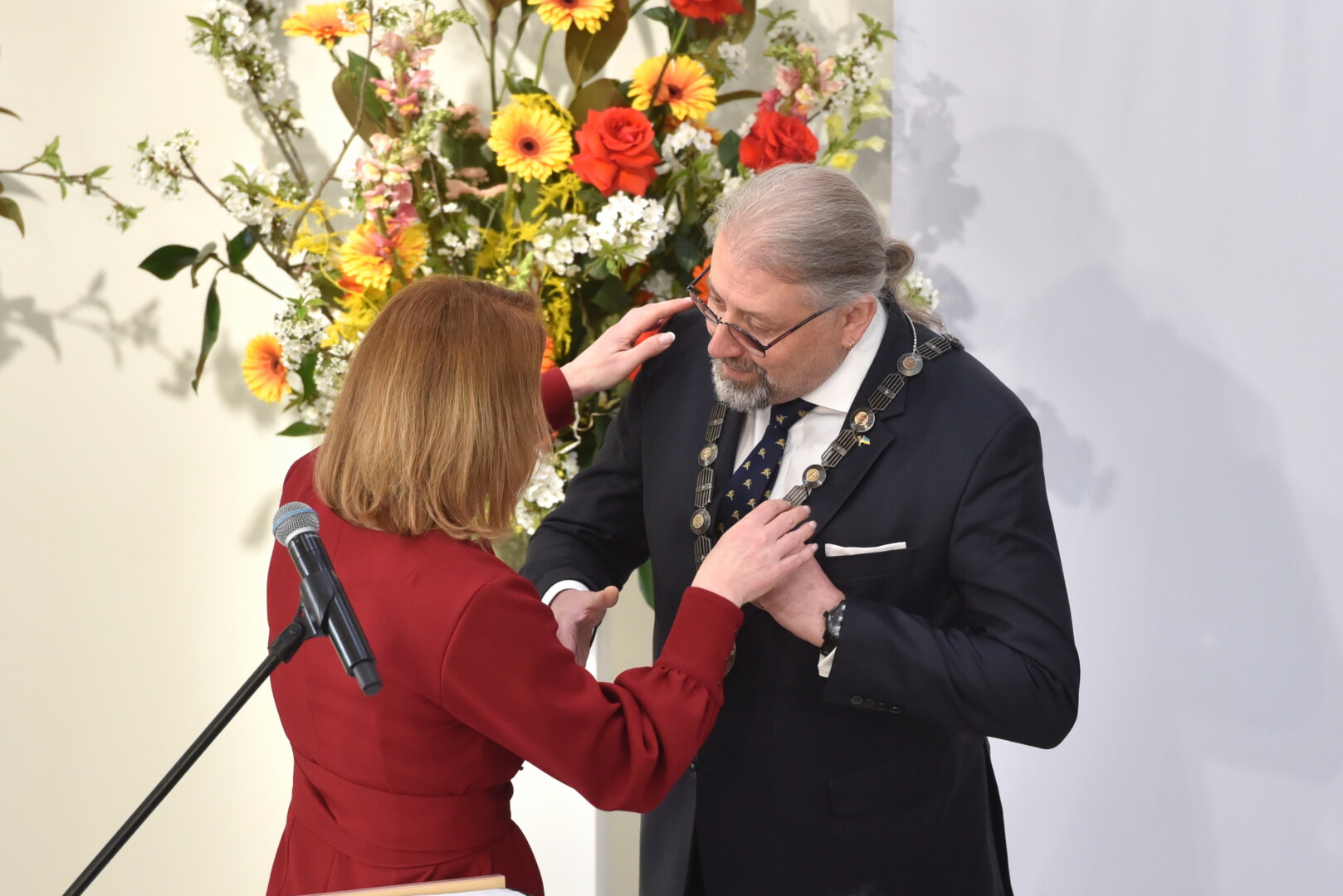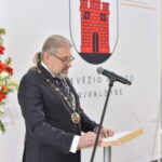 Trečiajai kadencijai inauguruotam merui regalijas įteikė Panevėžio rinkimų komisijos pirmininkė Zita Stripeikienė.