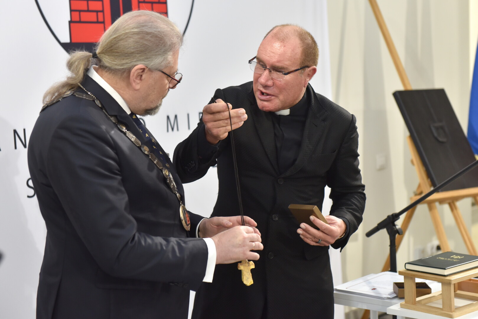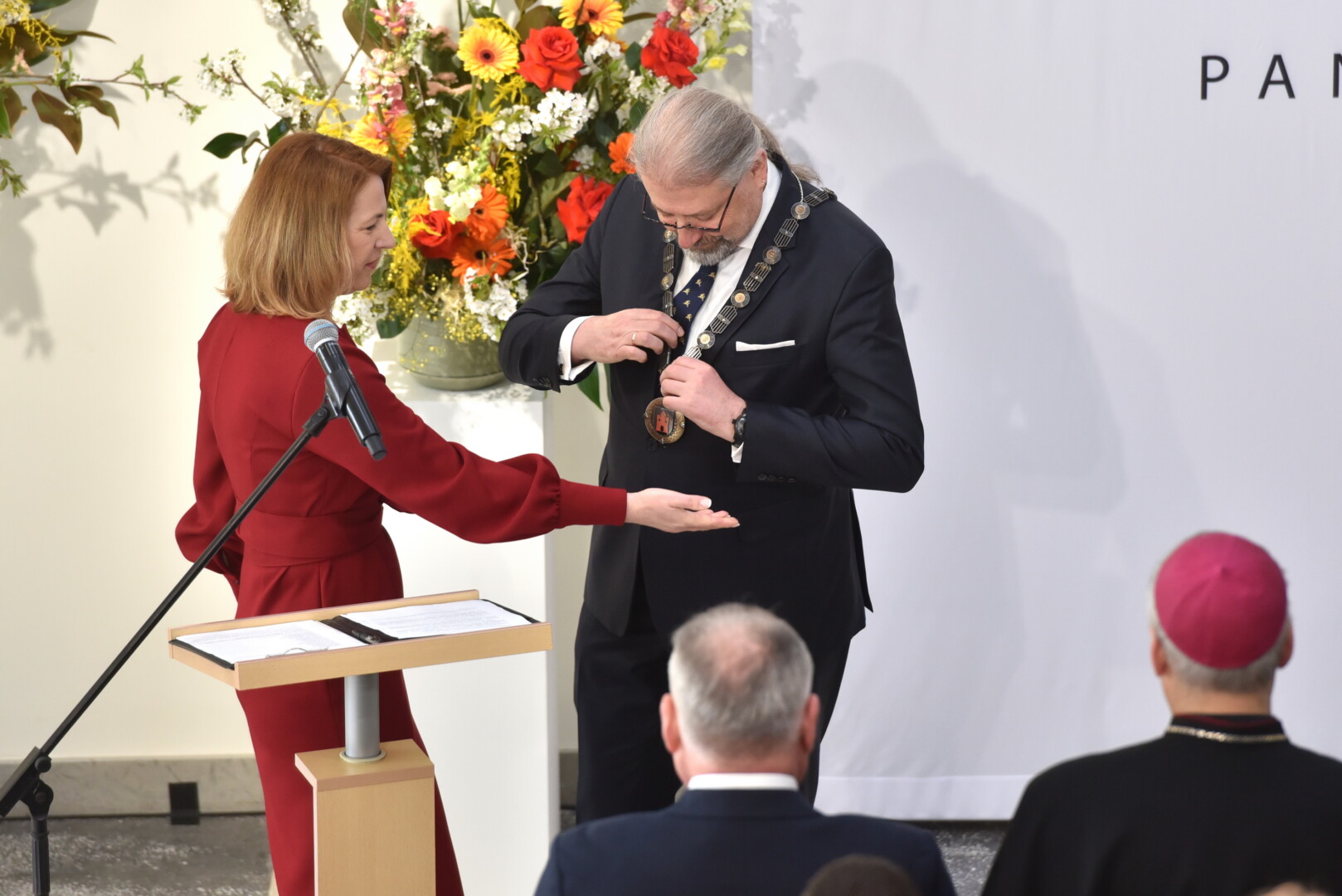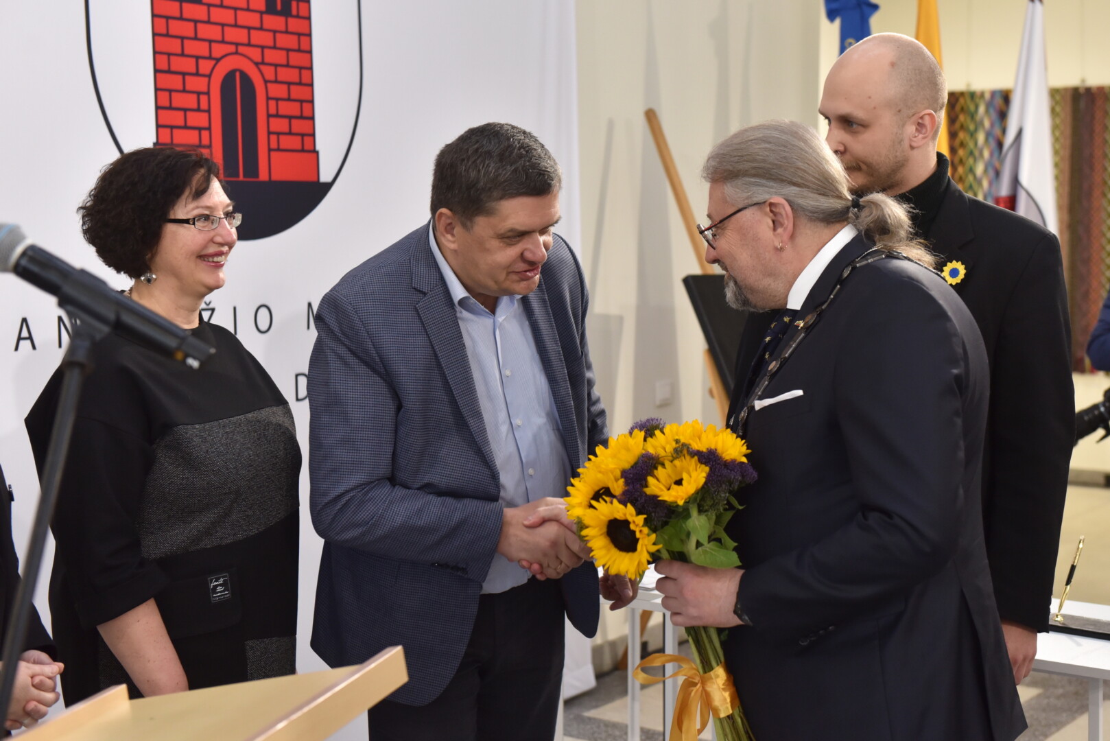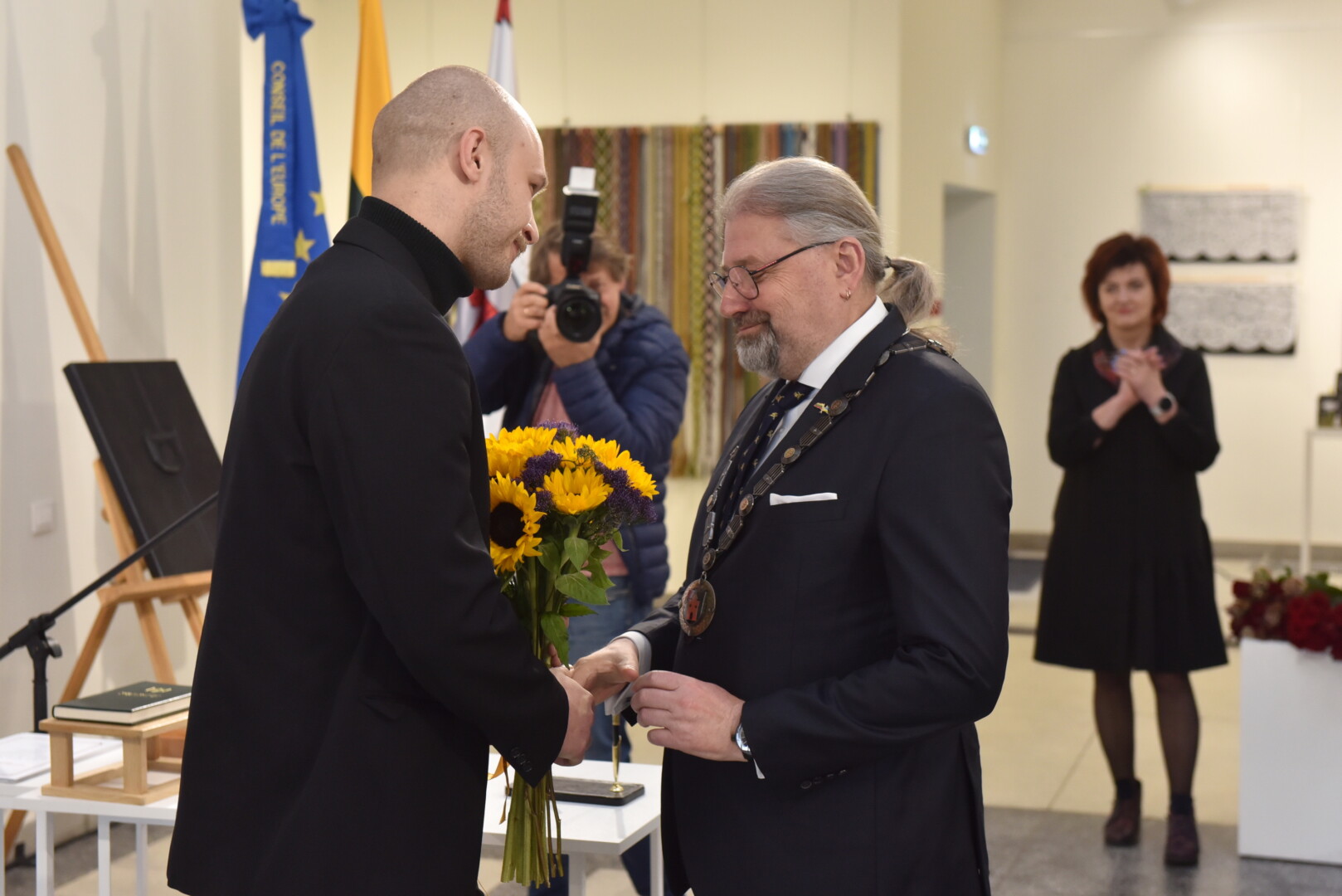 Trečiajai kadencijai inauguruotam merui regalijas įteikė Panevėžio rinkimų komisijos pirmininkė Zita Stripeikienė.