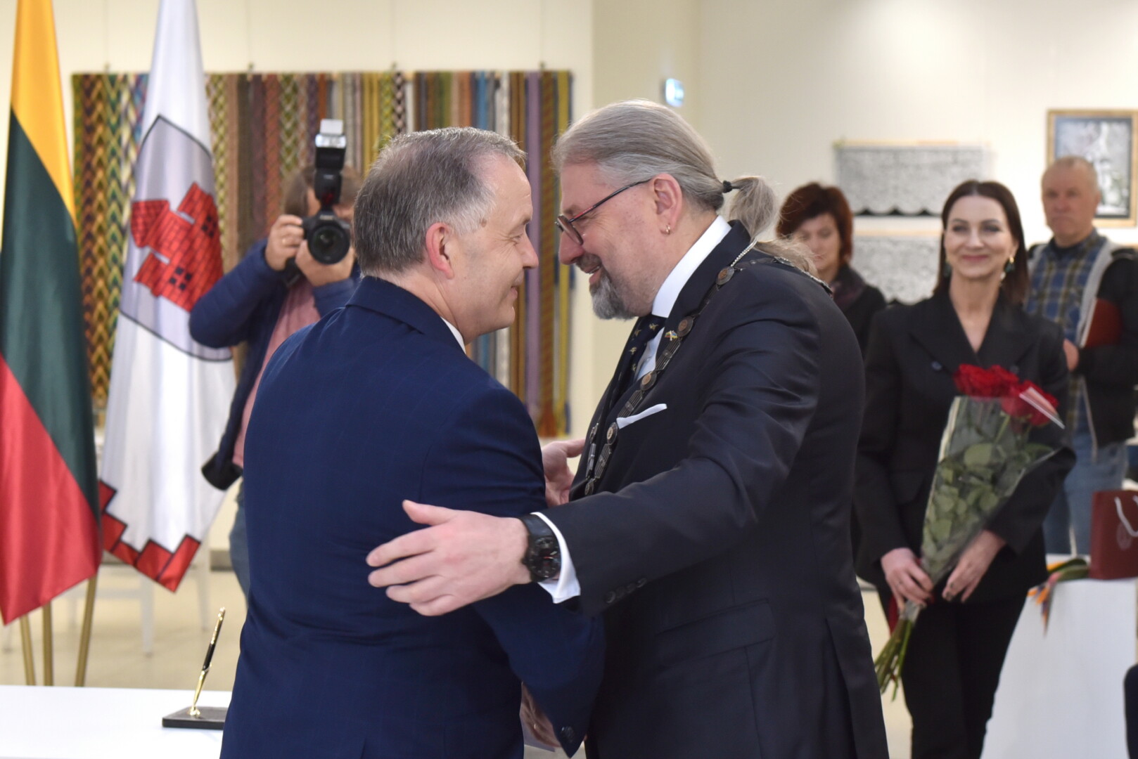 Ne mojuoti kumščiais, o apsikabinti linkėjo ir pasveikinti atvykęs rajono Savivaldybės naujasis meras, prieš porą dienų priesaiką davęs Antanas Pocius.